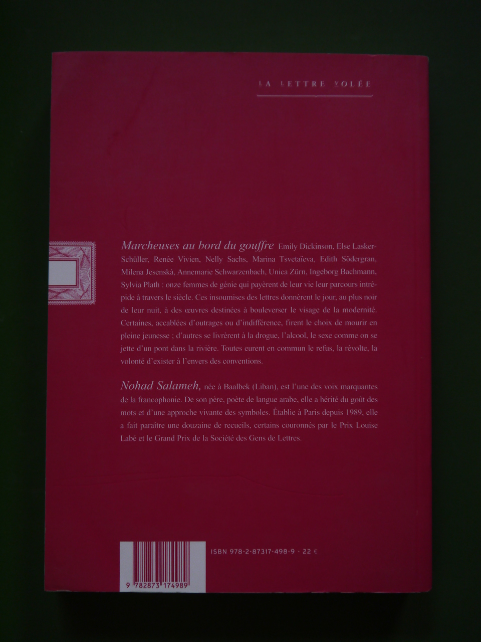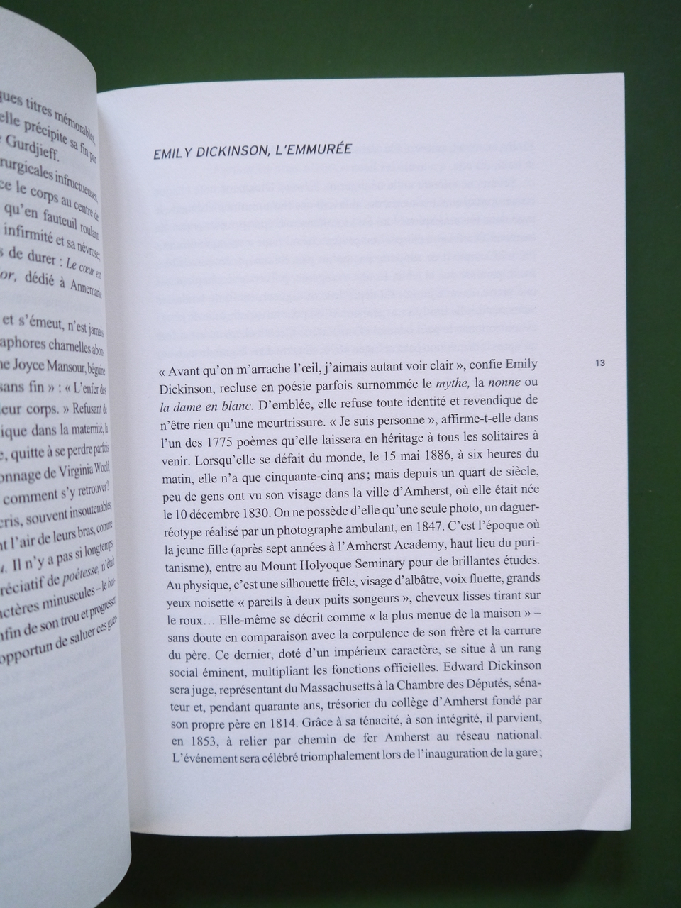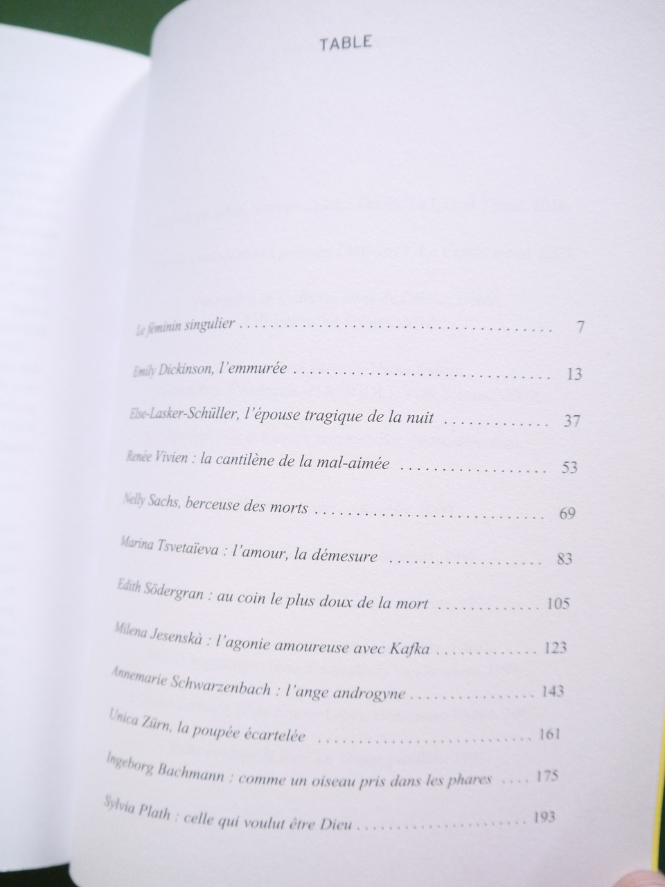 Evocation de « onze figures tragiques des lettres féminines » dont Emily Dickinson et Sylvia Plath.
