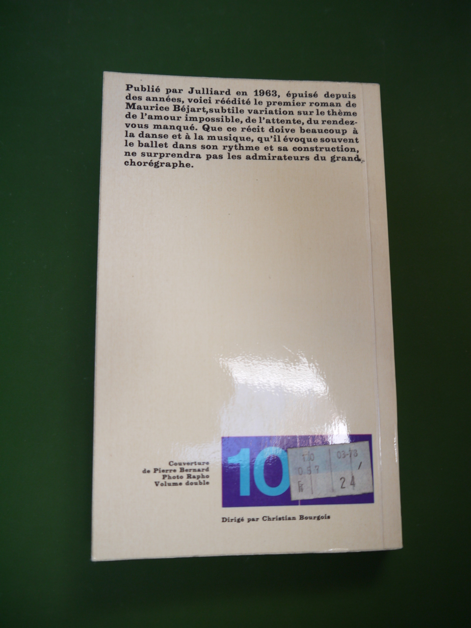 L’édition poche d’un titre édité par Julliard en 1963. (Ce titre devrait peut-être plutôt figurer sur www.lefrancophile.be – Béjart étant français…)