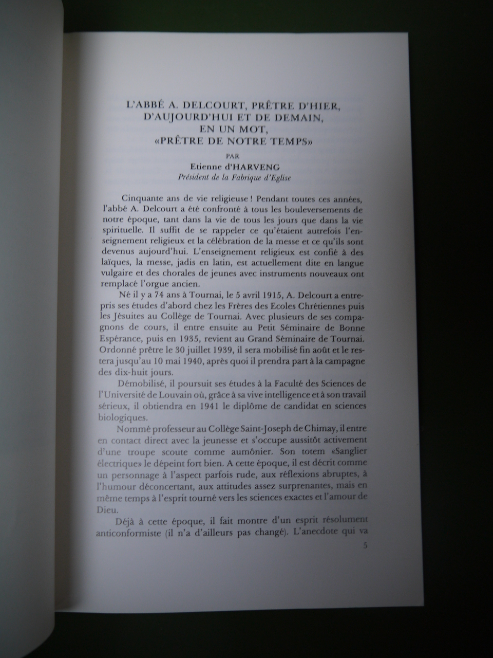 Etudes et documents VIII. L’abbé Delcourt est né en 1915 à Tournai. Au programme de ce volume: CANNUYER (Christian), THEMONT (M.) et VAN HAUDENARD (Maurice) — Prosopographie du clergé séculier brugelettois (XXe-XXe s.). 22 p.