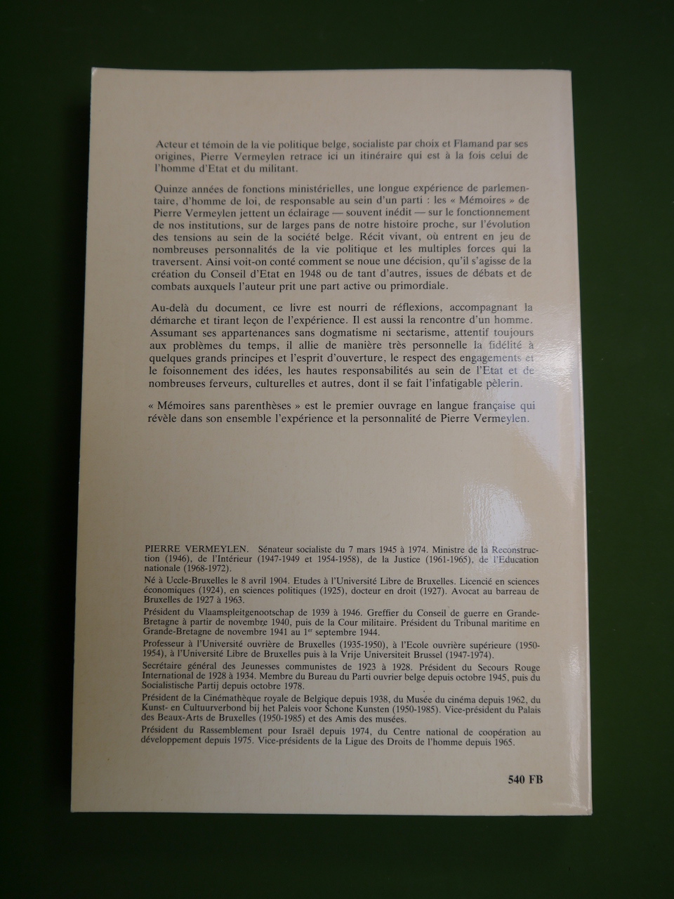 Soyez le premier à laisser votre avis sur “Mémoires sans parenthèses, Pierre Vermeylen, CRISP, 1985”