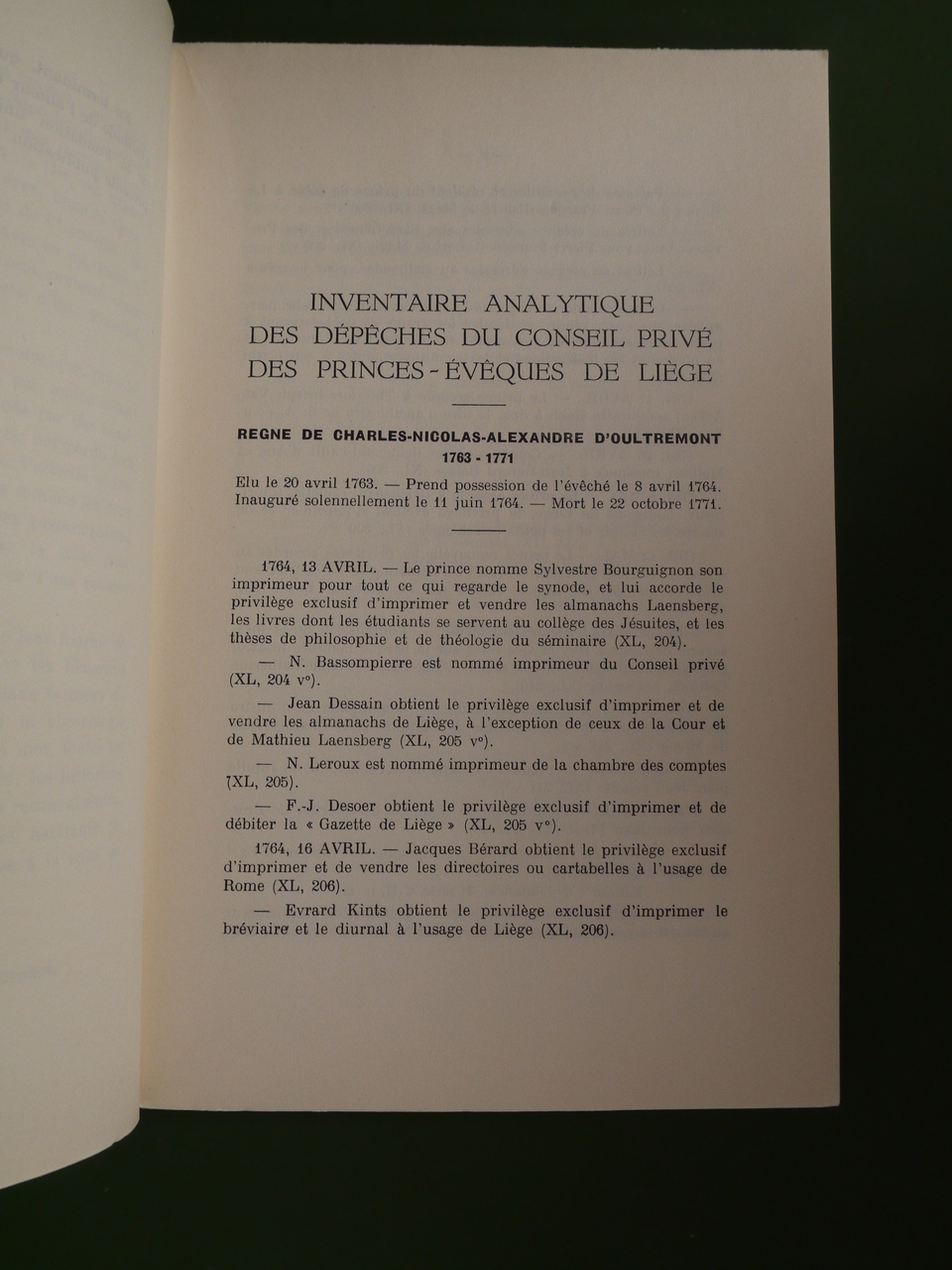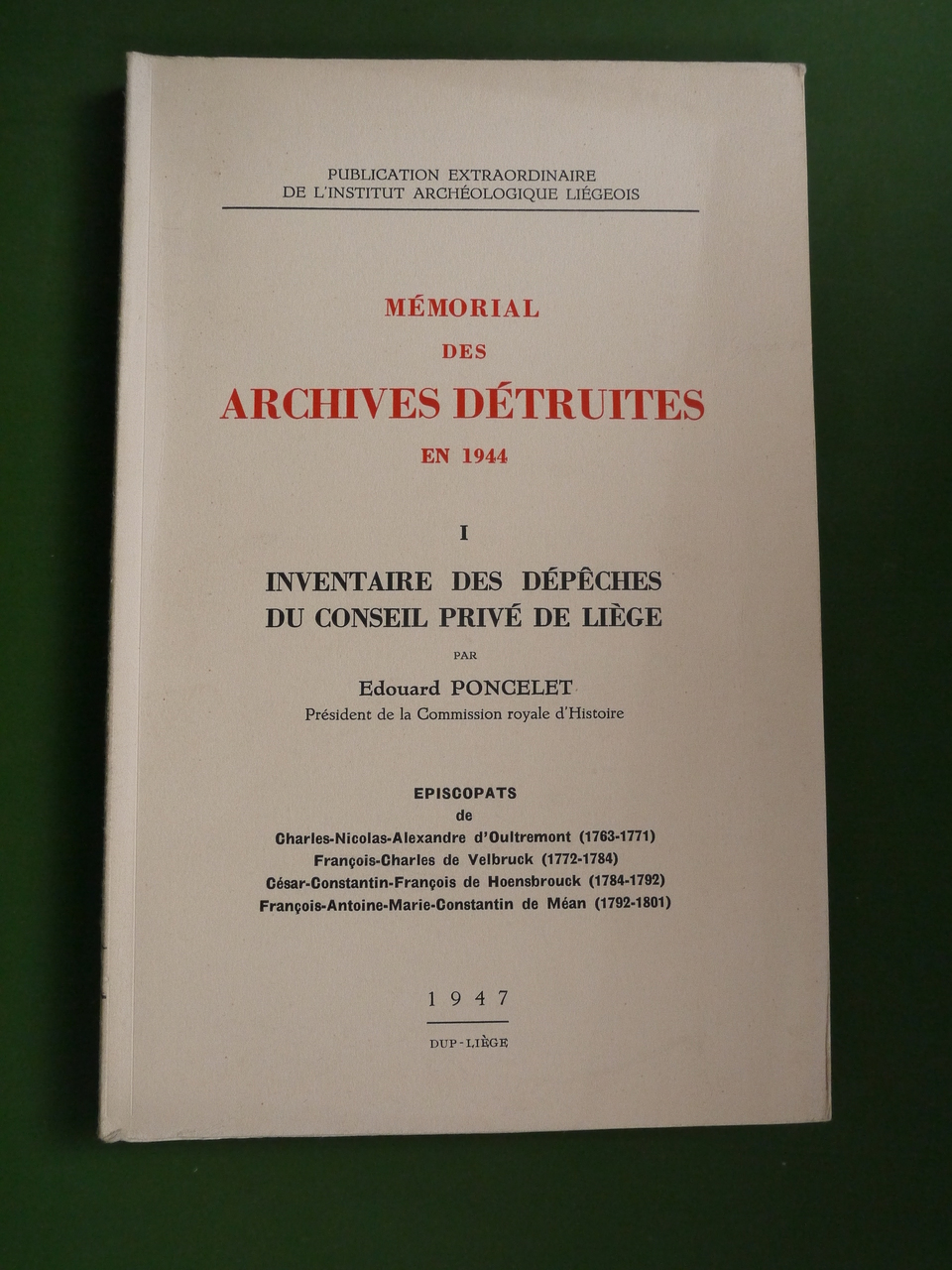 « Episcopats de Charles-Nicolas-Alexandre d’Oultremont (1763-1771), François-Charles de Velbruck (1772-1784), César-Constantin-François de Hoensbrouck (1784-1792) François-Antoine-Marie-Constantin de Méan (1792-1801) ».