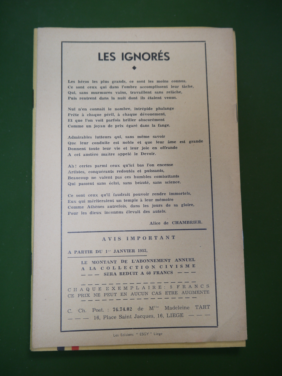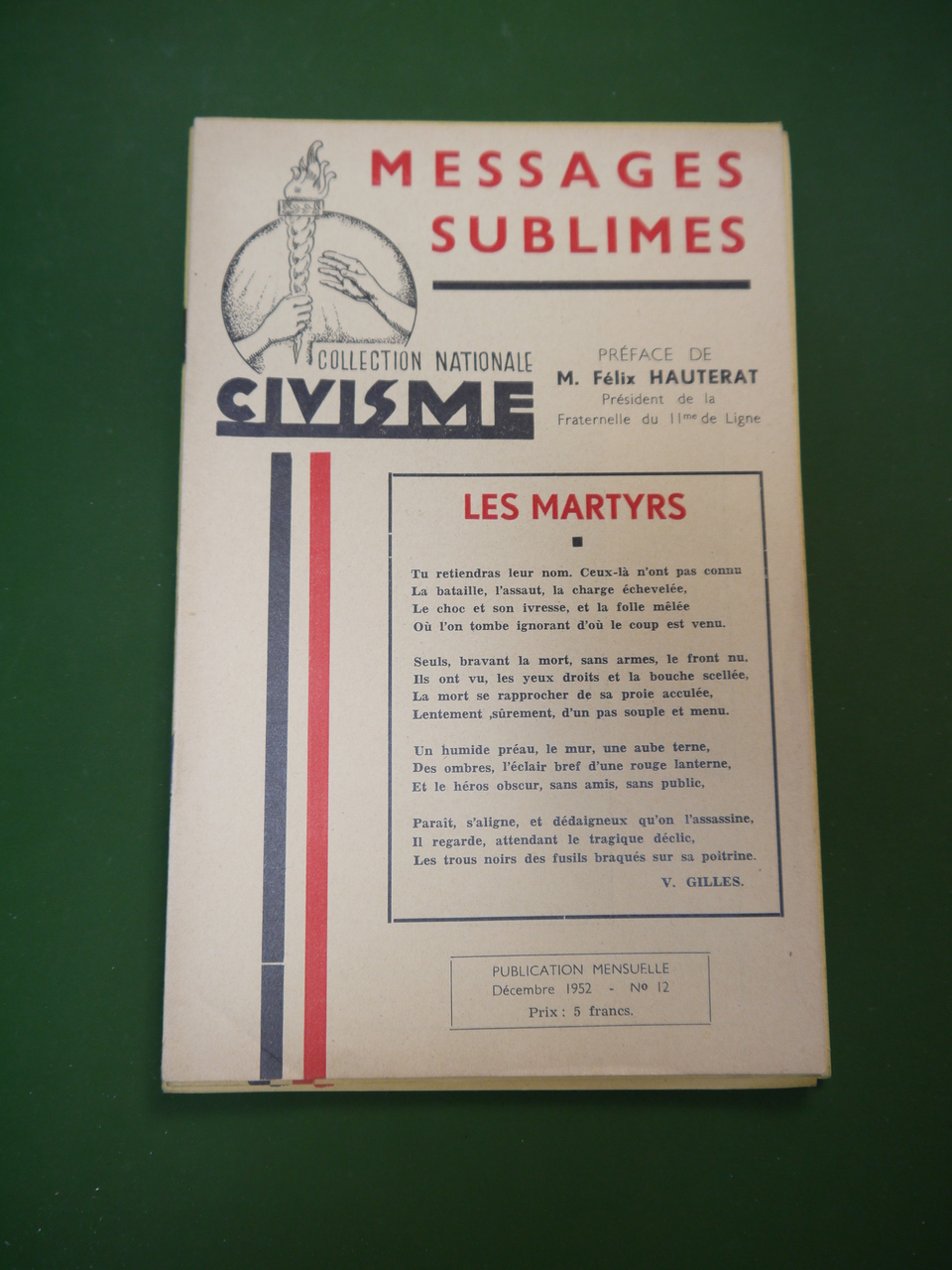 Le feuillet « Civisme » de décembre 1952. 20 pages. Lettres de résistants fusillés.