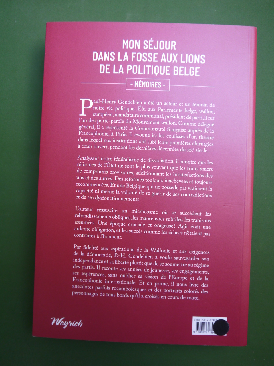 Les mémoires de celui qui dirigea le Rassemblement wallon dans les années ’70.