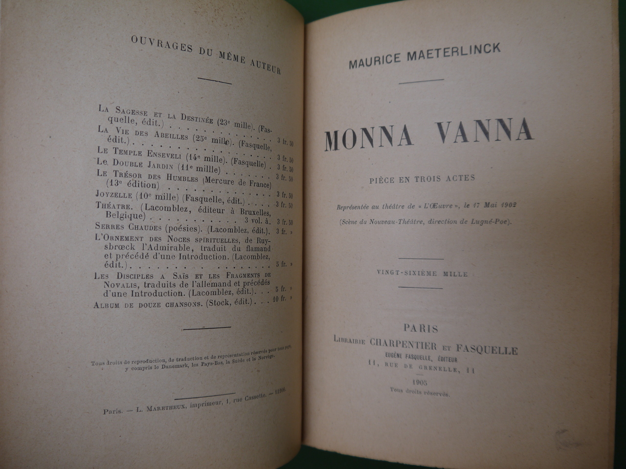 Soyez le premier à laisser votre avis sur “Monna Vanna, Maurice Maeterlinck, Eugène Fasquelle, 1905”
