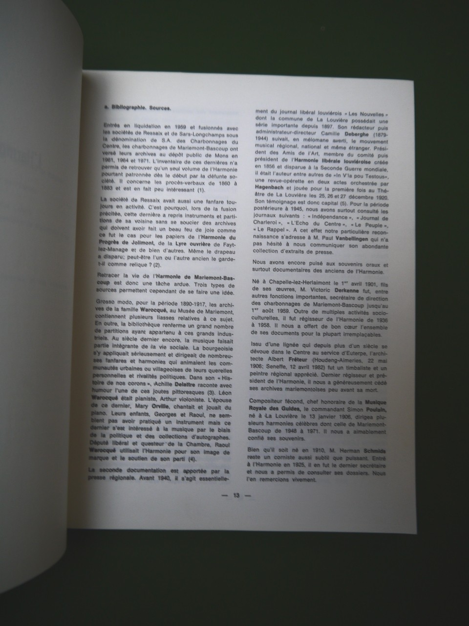 « Essai sur le goût musical dans le Centre industriel 1830-1970 – L’Harmonie des charbonnages de Mariemont-Bascoup, les Choeurs de Bascoup ».