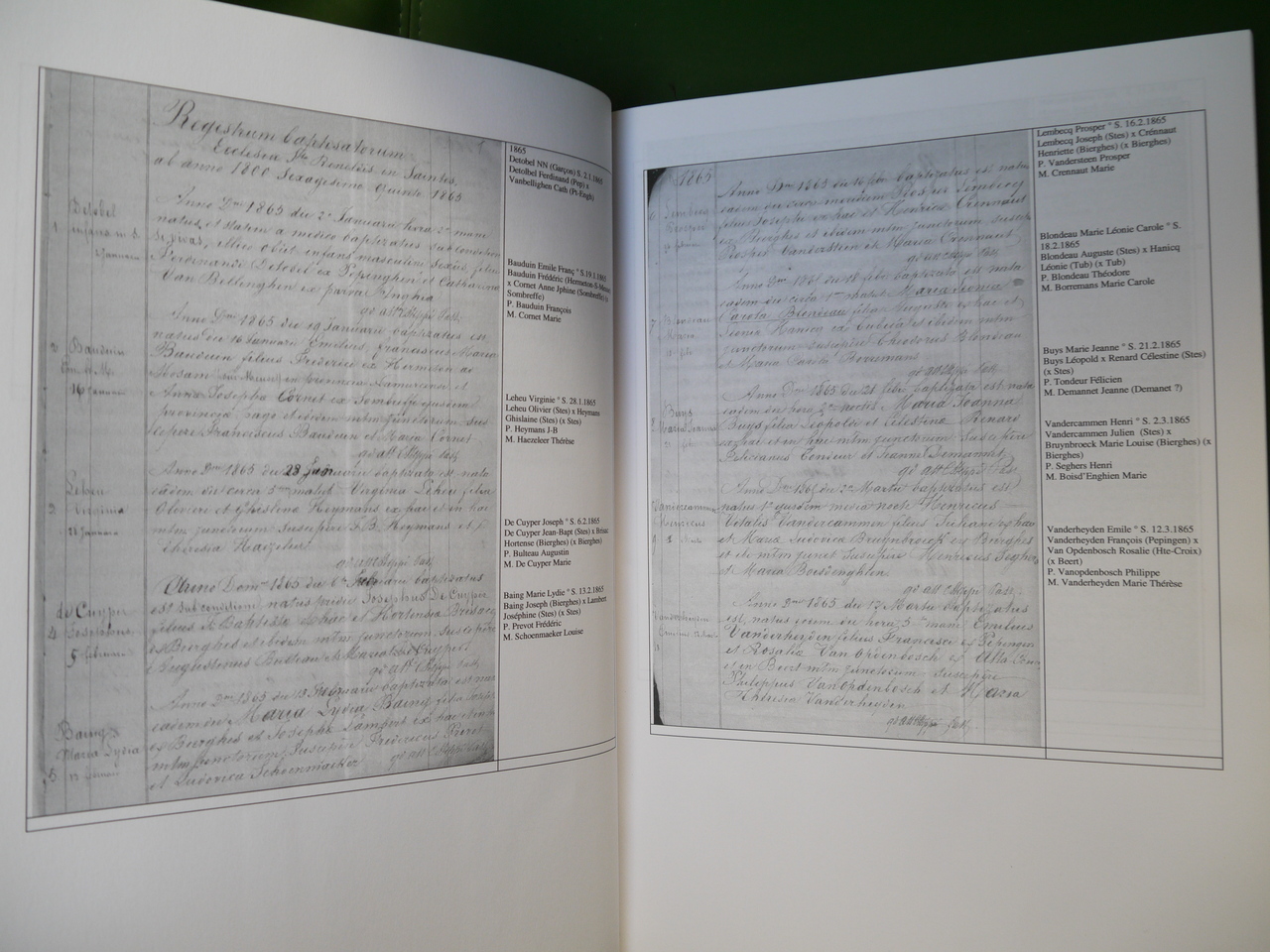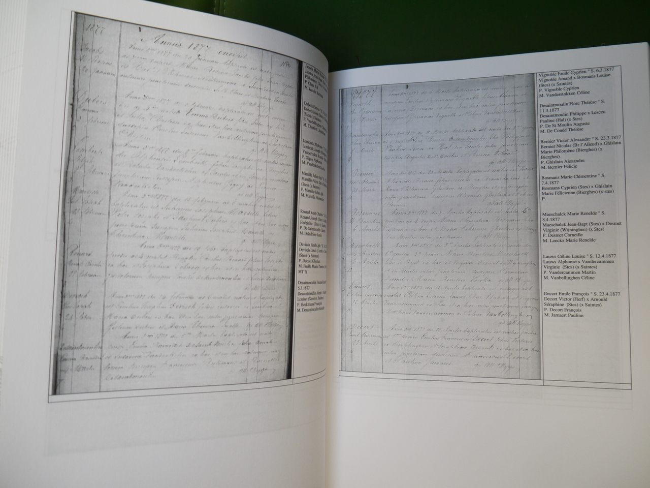 Reproduction et transcription des actes de naissance du village de Saintes, près de Hal.