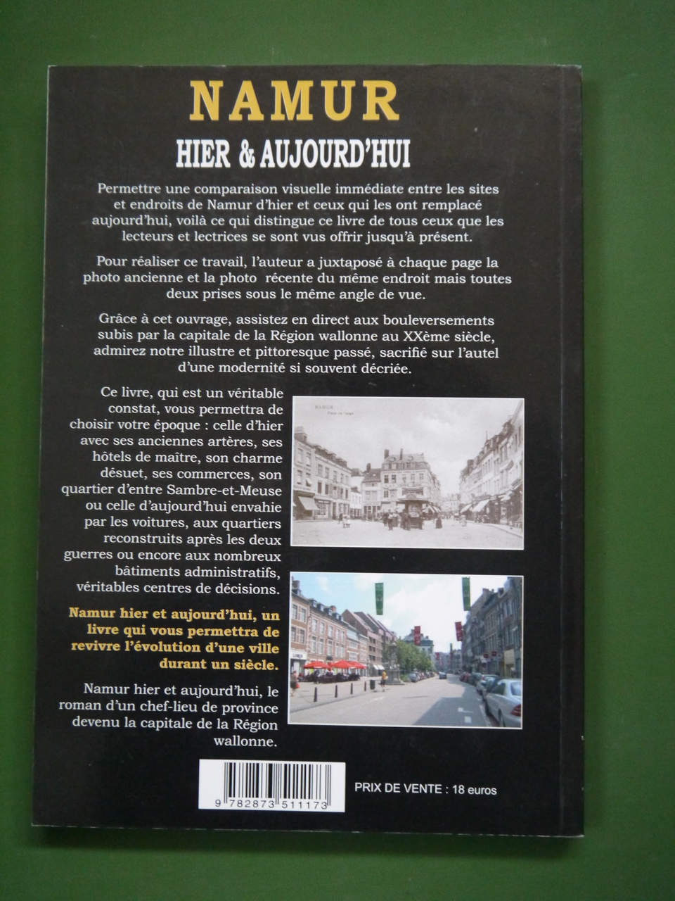 L’auteur compare environ 150 photos du vieux Namur (des anciennes cartes postales pour la plupart) avec leur équivalent aujourd’hui.