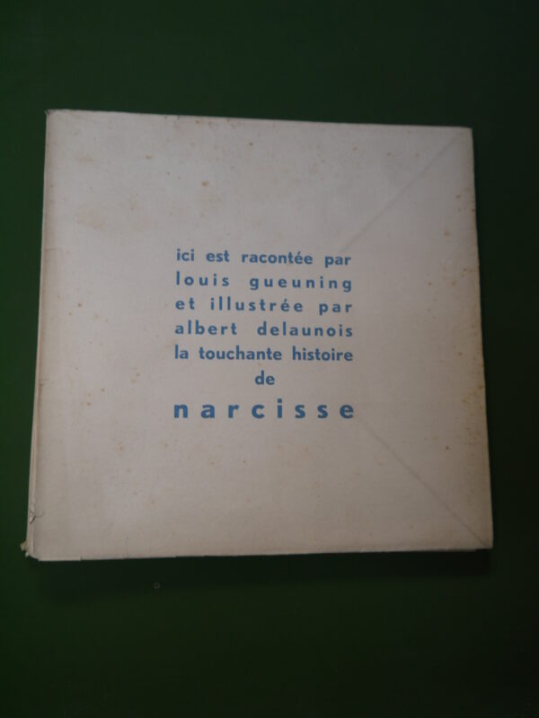 « Ici est racontée par Louis Gueuning et illustrée par Albert Delaunois la touchante histoire de Narcisse ».