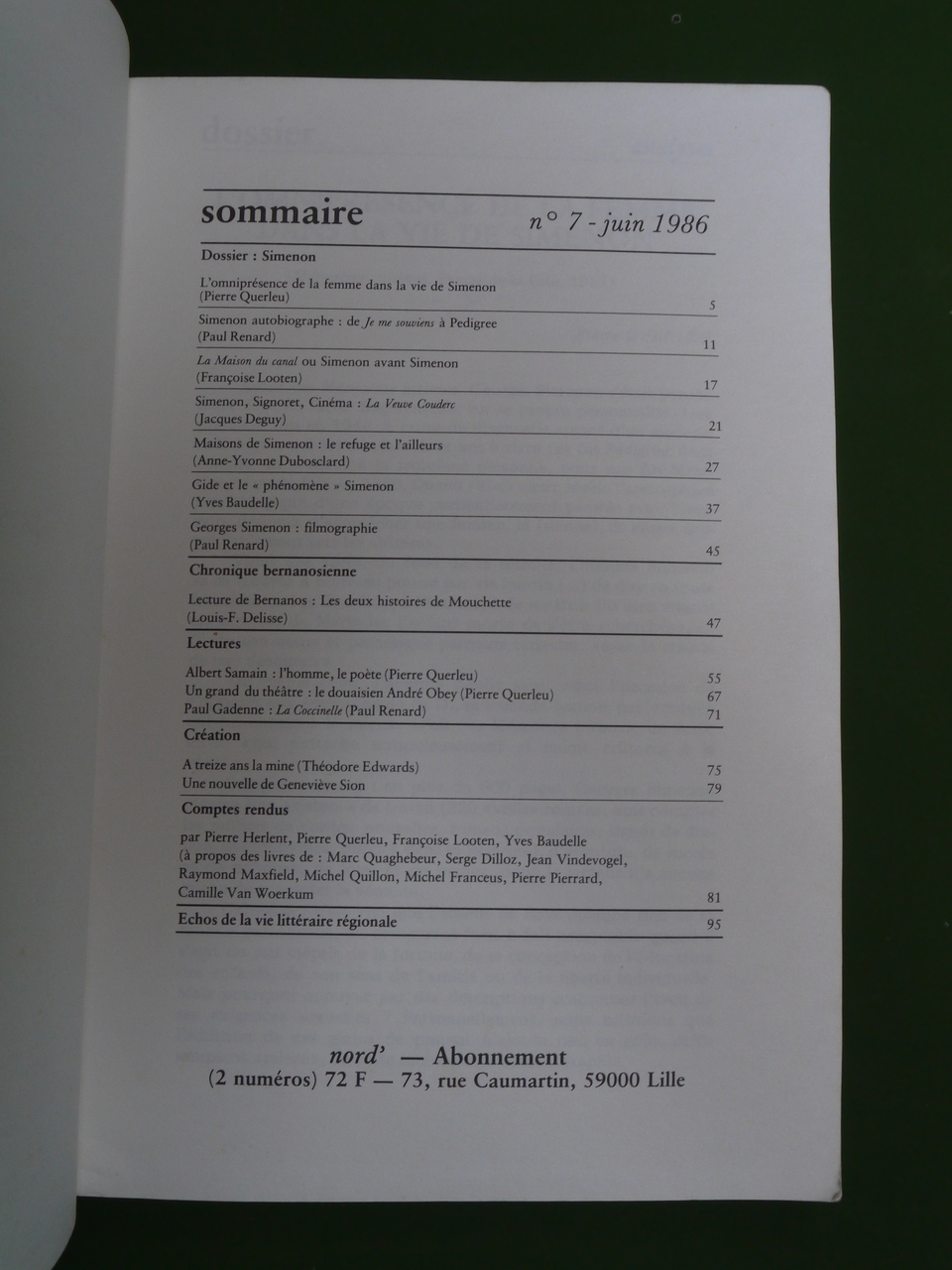Le n°7 de la revue Nord, « revue de critique et de création littéraires du Nord/Pas-de-Calais », est consacré à Simenon…