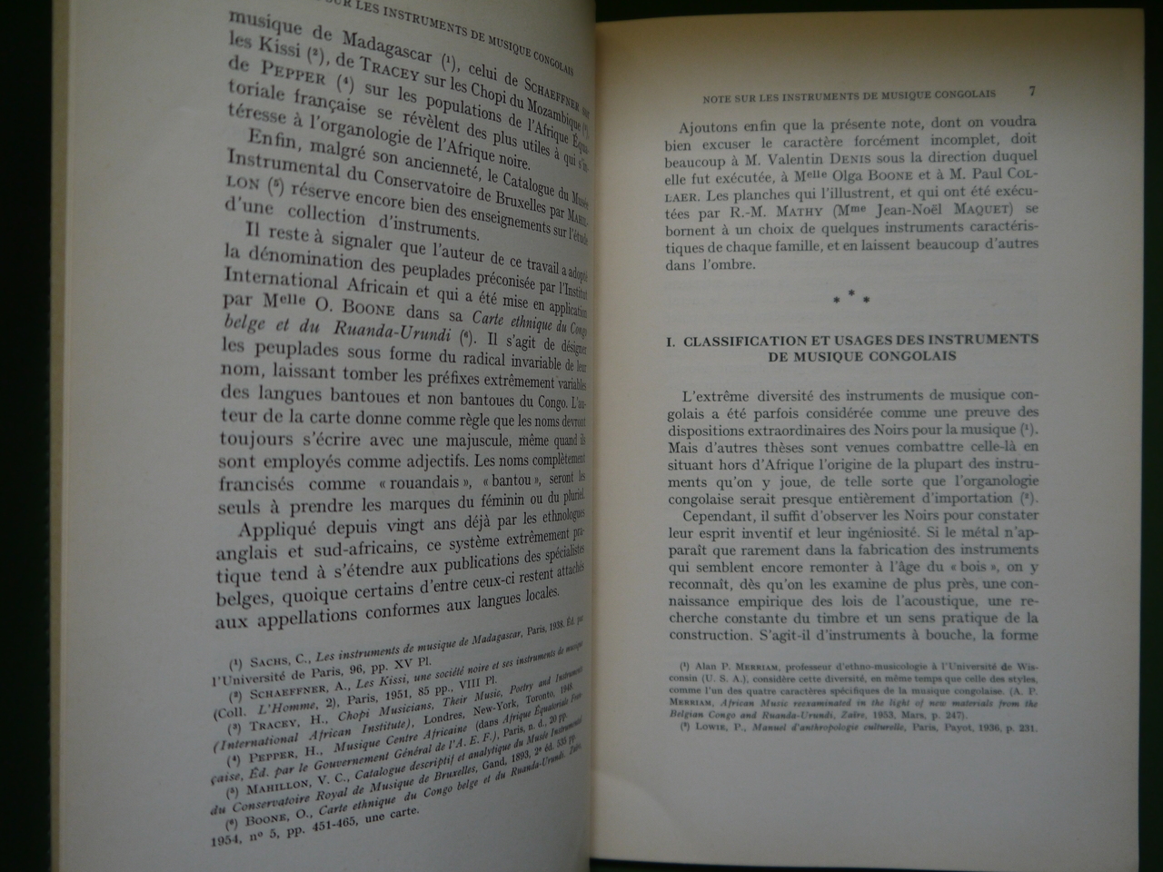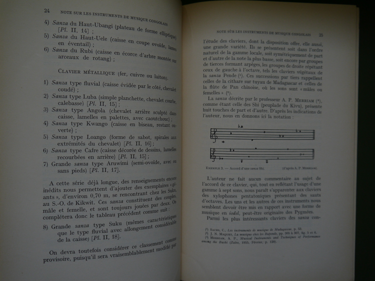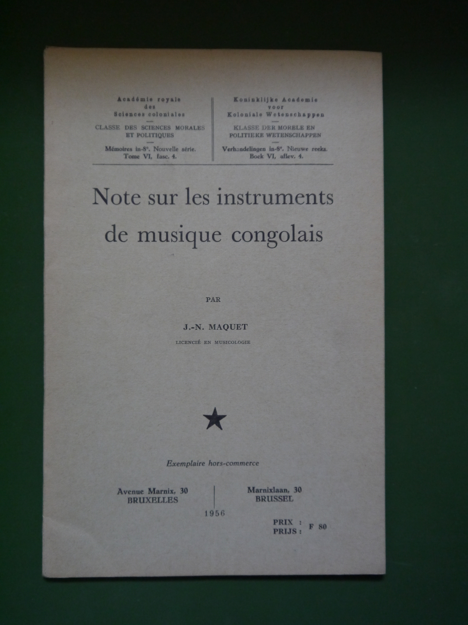 Note sur les instruments de musique congolais, J.-N. Maquet, Académie royale des sciences coloniales, 1956