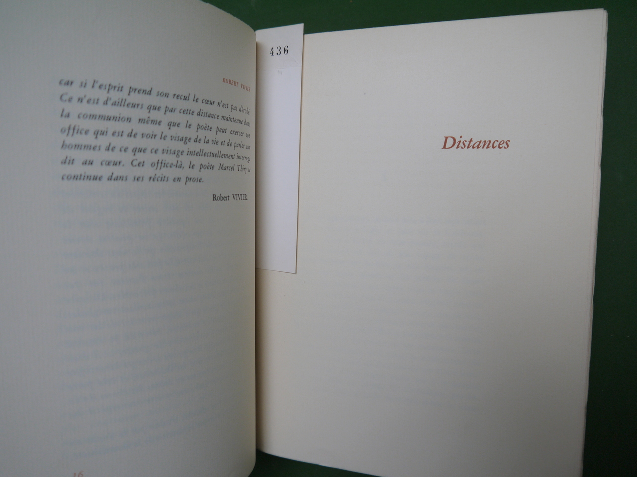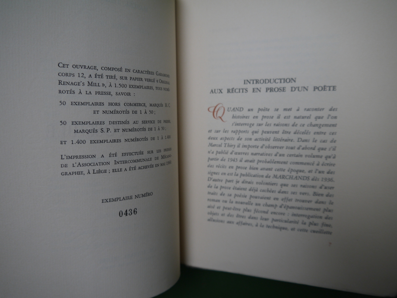 Préface de Robert Vivier. Tirage de 1500 exemplaires numérotés.