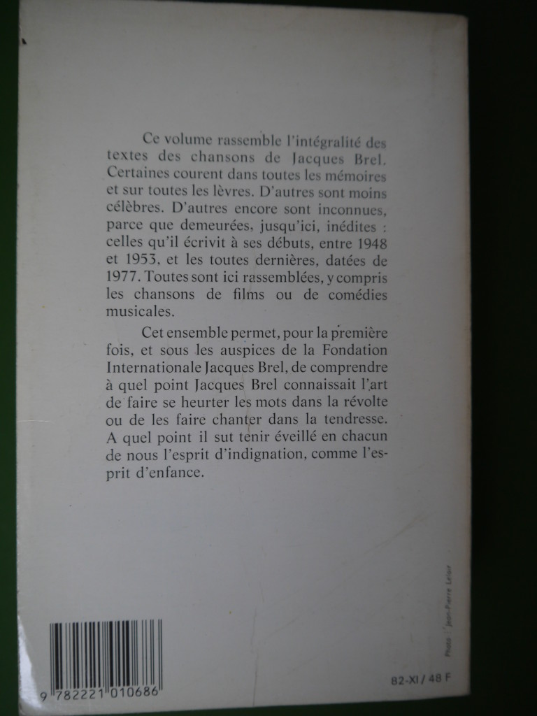 Tous les textes de Brel, y compris les chansons pour spectacles ou le cinéma.