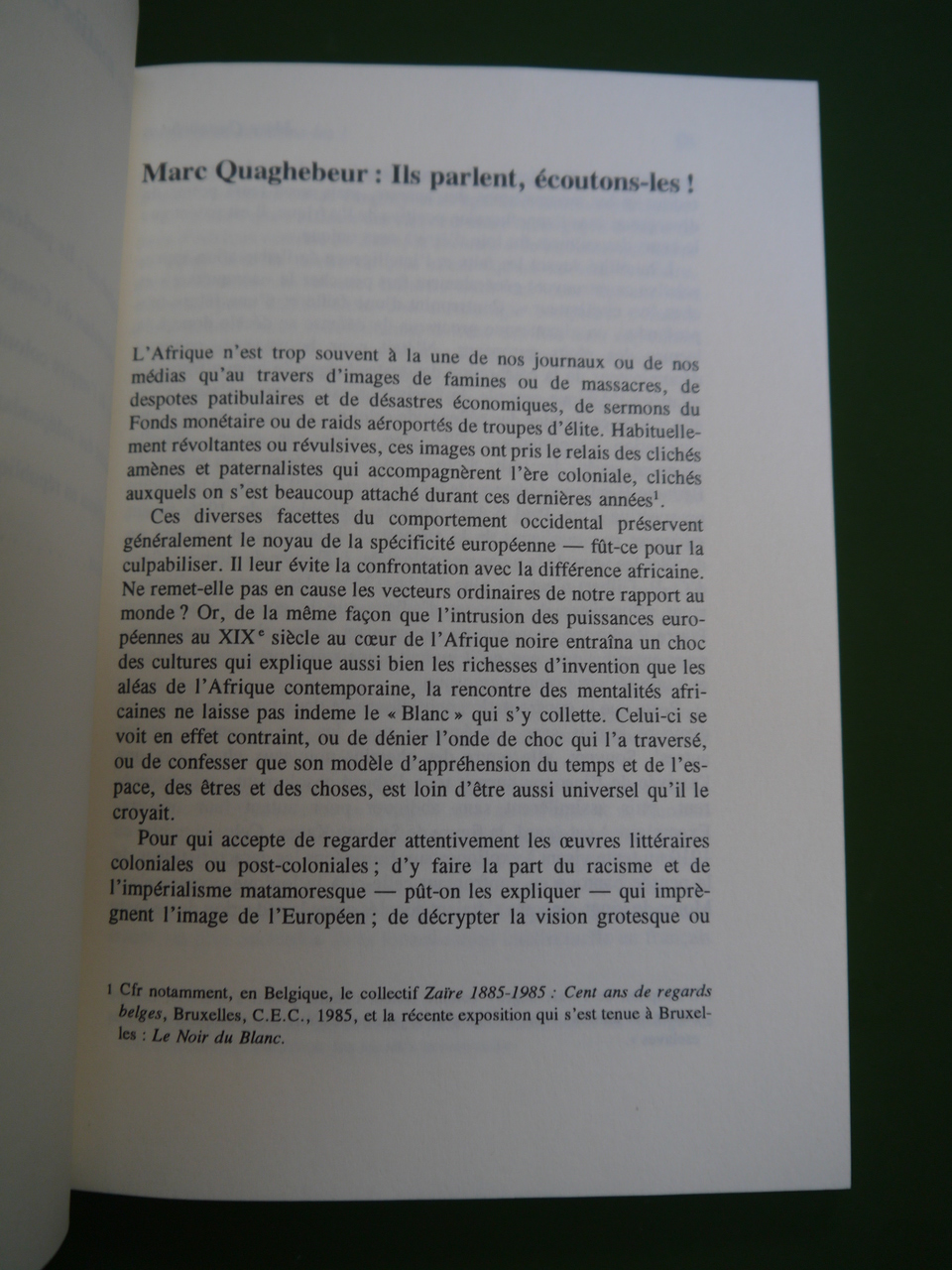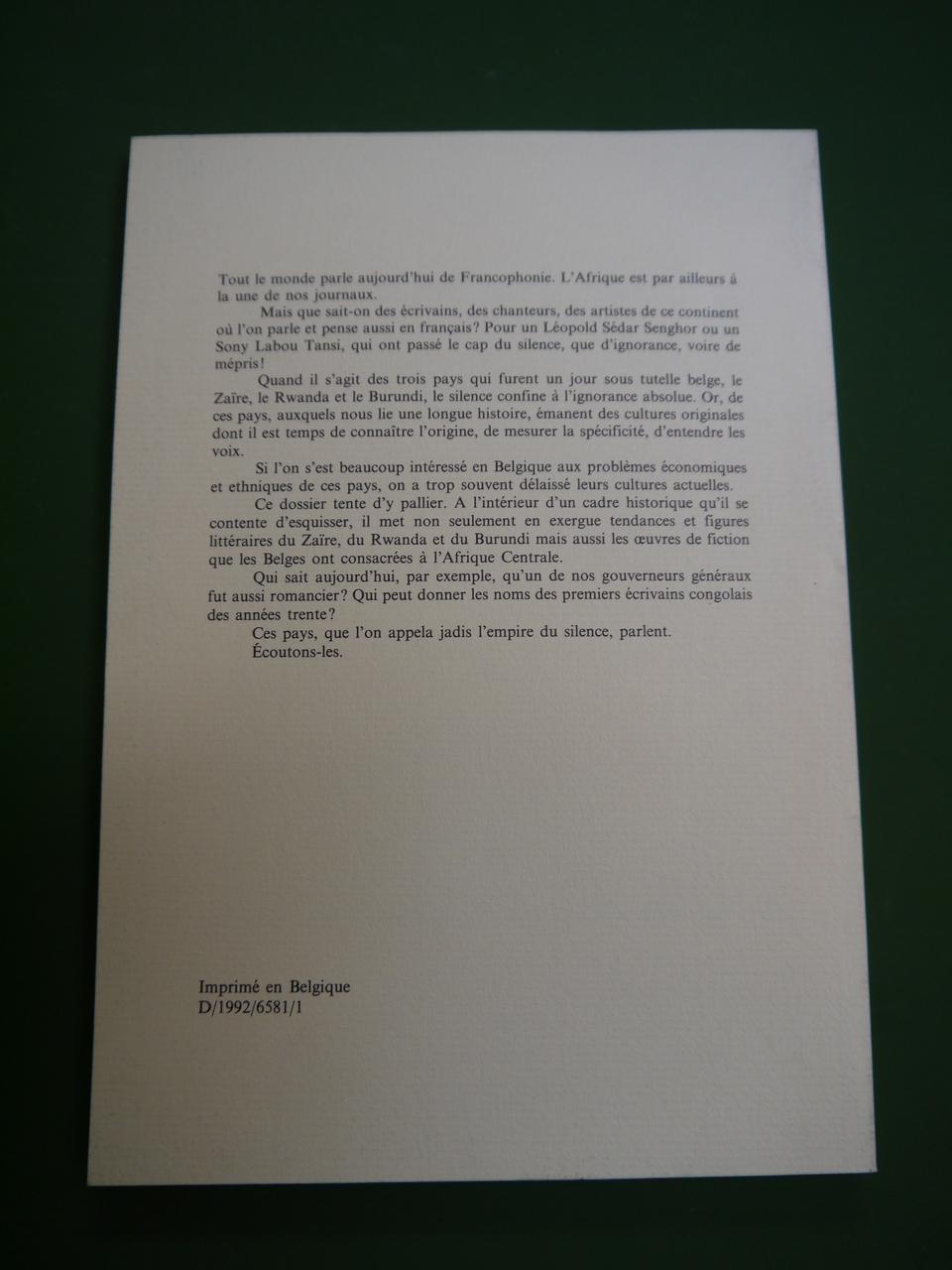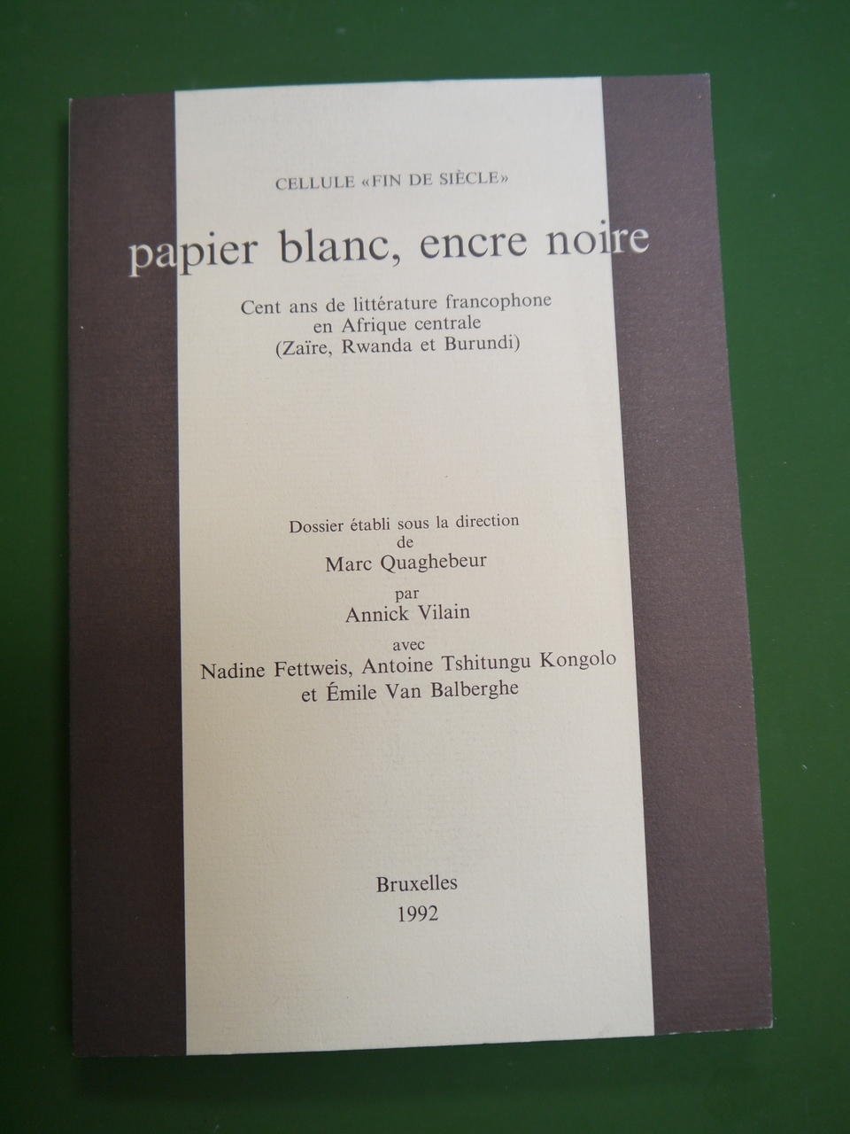 « Cent ans de littérature francophone en Afrique centrale – Zaïre, Rwanda et Burundi ».
