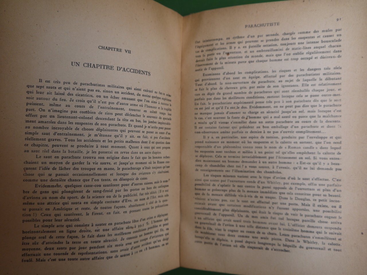 Un ouvrage écrit par un parachutiste vraisemblablement américain, dans une traduction de Léopold Rauis. Etat moyen.