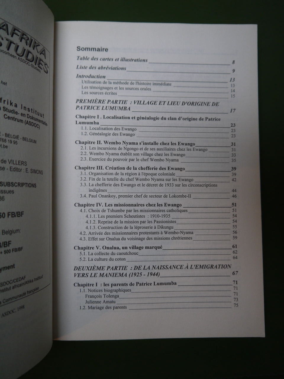 Numéros 33 et 34 des Cahiers africains de l’Institut africain CEDAF/ASDOC. 265 pages. Exemplaire plastifié .