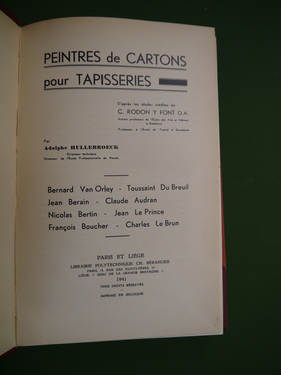 « Bernard van Orley – Toussaint du Breuil – Jean Berain – Claude Audran – Nicolas Bertin – Jean le Prince – François Boucher – Charles le Brun ».