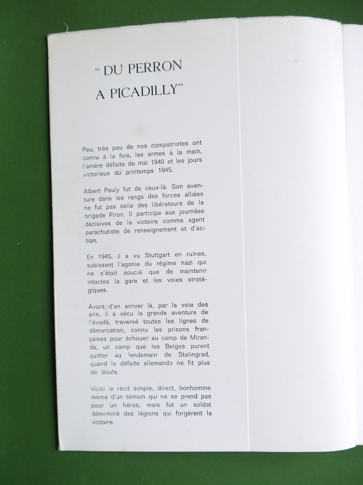 Récit d’un combattant belge de 1940, évadé, puis agent parachutiste à la libération.