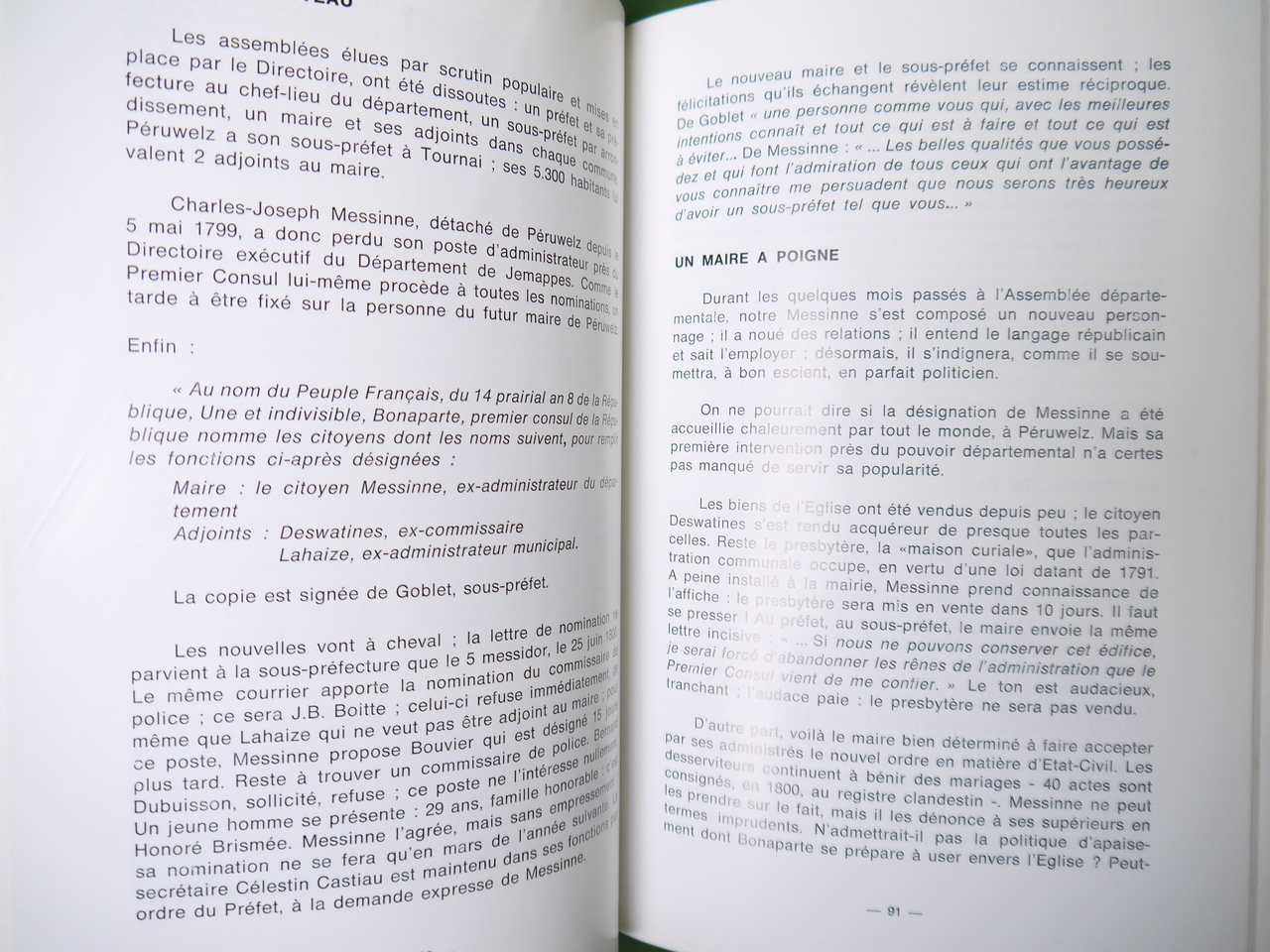 L’histoire de Péruwelz pendant la période « Liberté-Egalité ». Un tome 3 a également paru, consacré aux années 1830-1920.