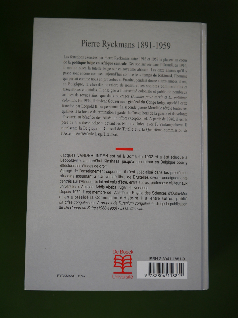 800 pages sur l’homme qui gouverna d’abord l’Urundi, puis longtemps le Congo, notamment pendant les années de guerre. L’auteur a également écrit un titre sur l’uranium congolais.