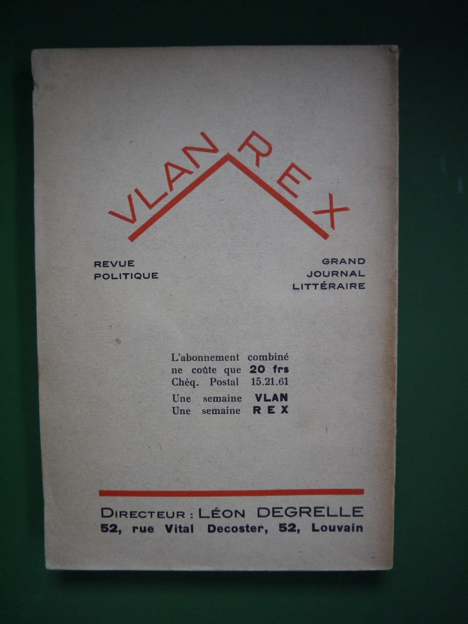 Sous-titre: « Réponse à José Streel ». Il s’agit de la plaquette « Les Jeunes gens et la politique » parue également chez Rex.