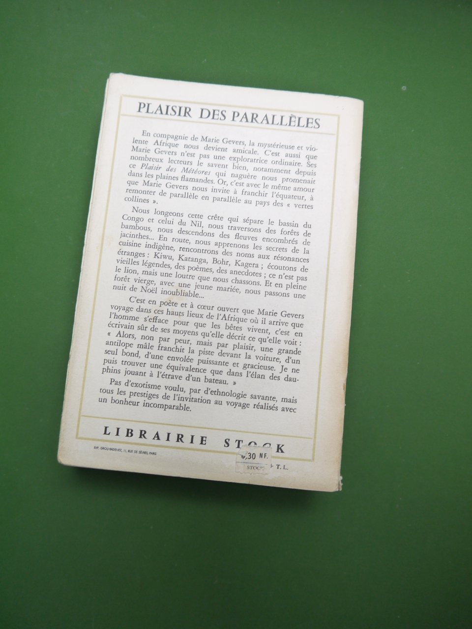 « Essai sur un voyage » qui emmena Marie Gevers dans quelques hauts lieux de l’Afrique centrale.