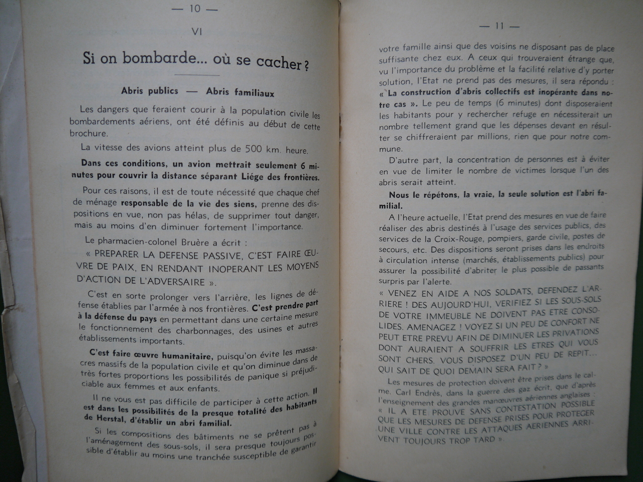 Parution vraisemblable fin 1939. Petite brochure à destination de la population de Herstal: où se cacher? Comment lutter contre un incendie? …