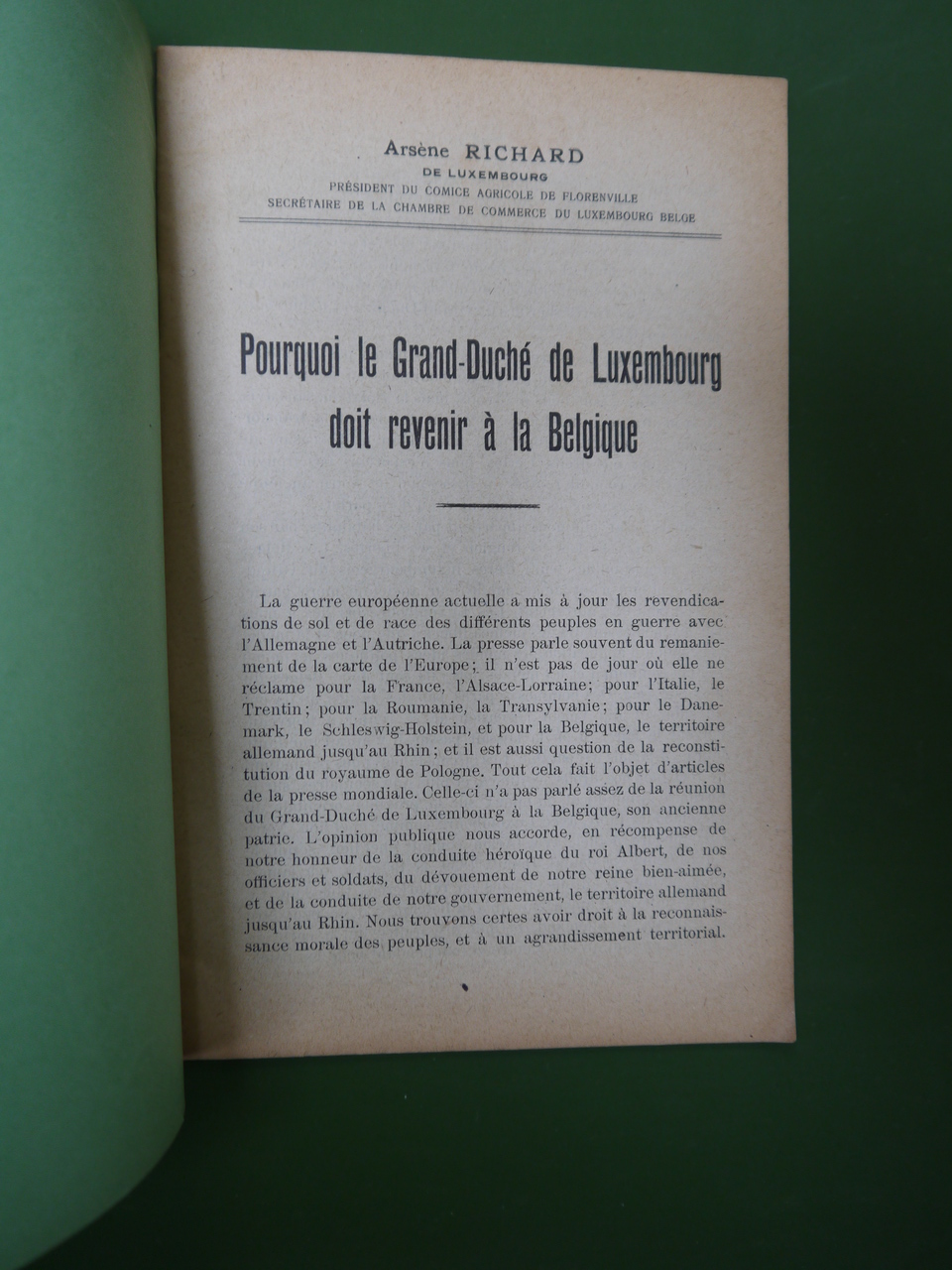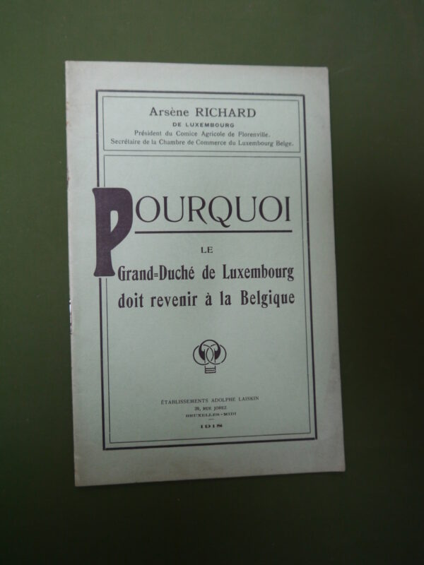 Pourquoi le Grand-duché de Luxembourg doit revenir à la Belgique, Arsène Richard, Adolphe Laiskin, 1918