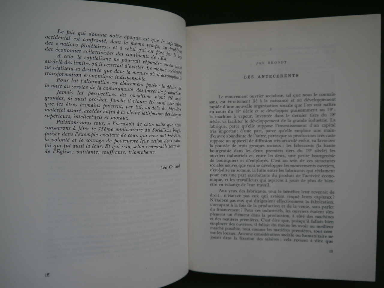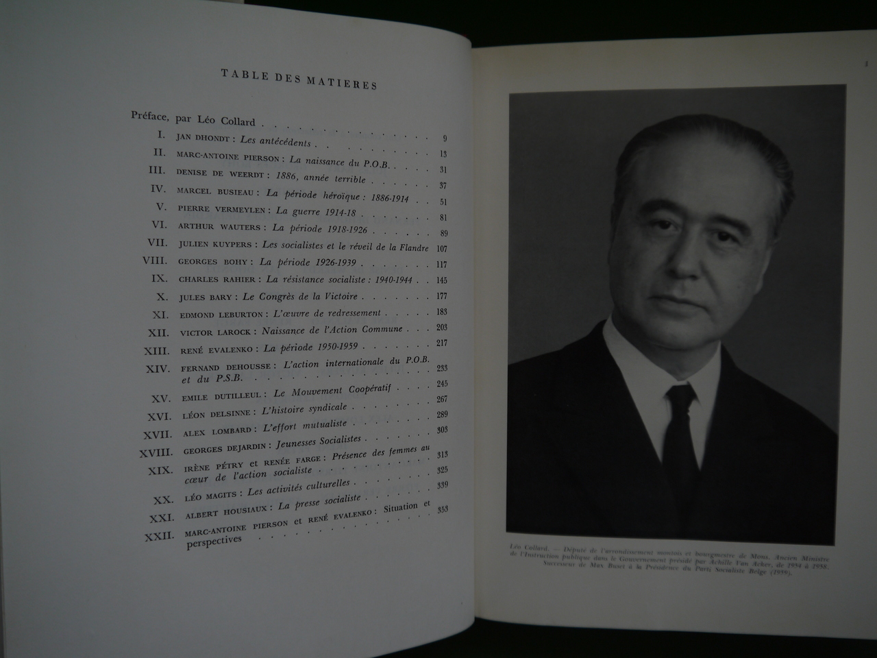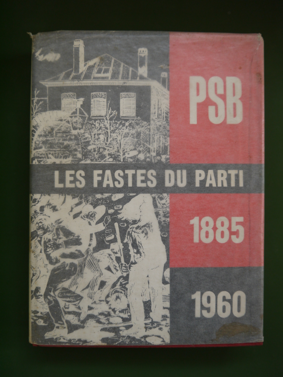 Le Parti socialiste fait fièrement le point sur ses 75 premières années… Au détour d’une page, glups, on tombe sur la maquette du futur immeuble de la Prévoyance sociale de Bruxelles, bientôt funestement célèbre pour avoir été érigé sur les décombres de la fameuse Maison du peuple de Horta…). L’exemplaire proposé est sans jaquette.