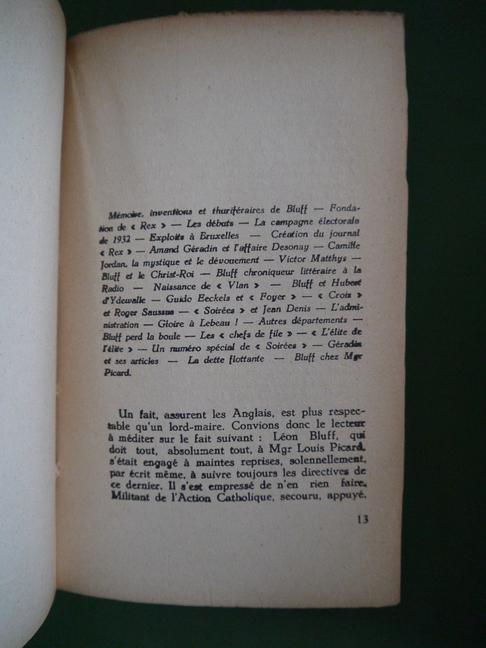 « Léon Bluff », « dictateur de purin »… Collaborateur de Rex entre 1932 et 1933, l’auteur ne déborde plus vraiment d’amour pour son ancien patron, c’est clair. Il sera déporté en 1944 et périra dans le camp nazi de Ellrich. Deux couvertures différentes existent.