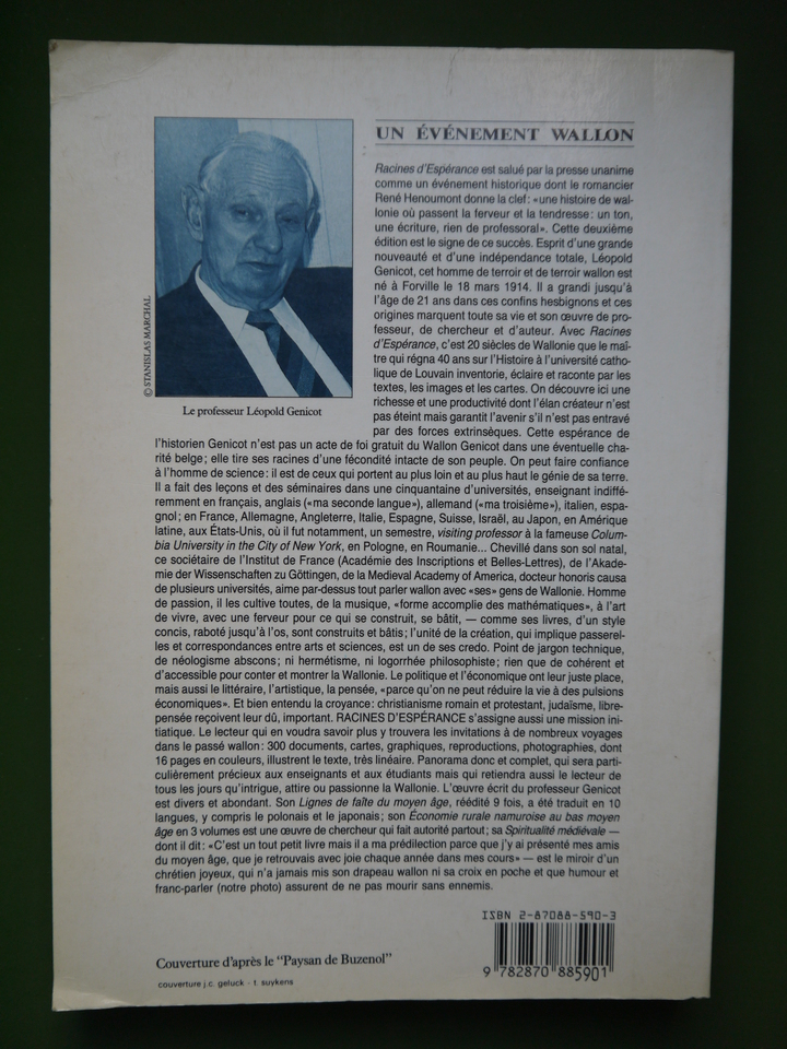 Historien à l’UCL, spécialiste du Moyen-Age, Léopold Génicot était par ailleurs un militant wallon convaincu. Il a dirigé l' »Histoire de Wallonie » visible ici.