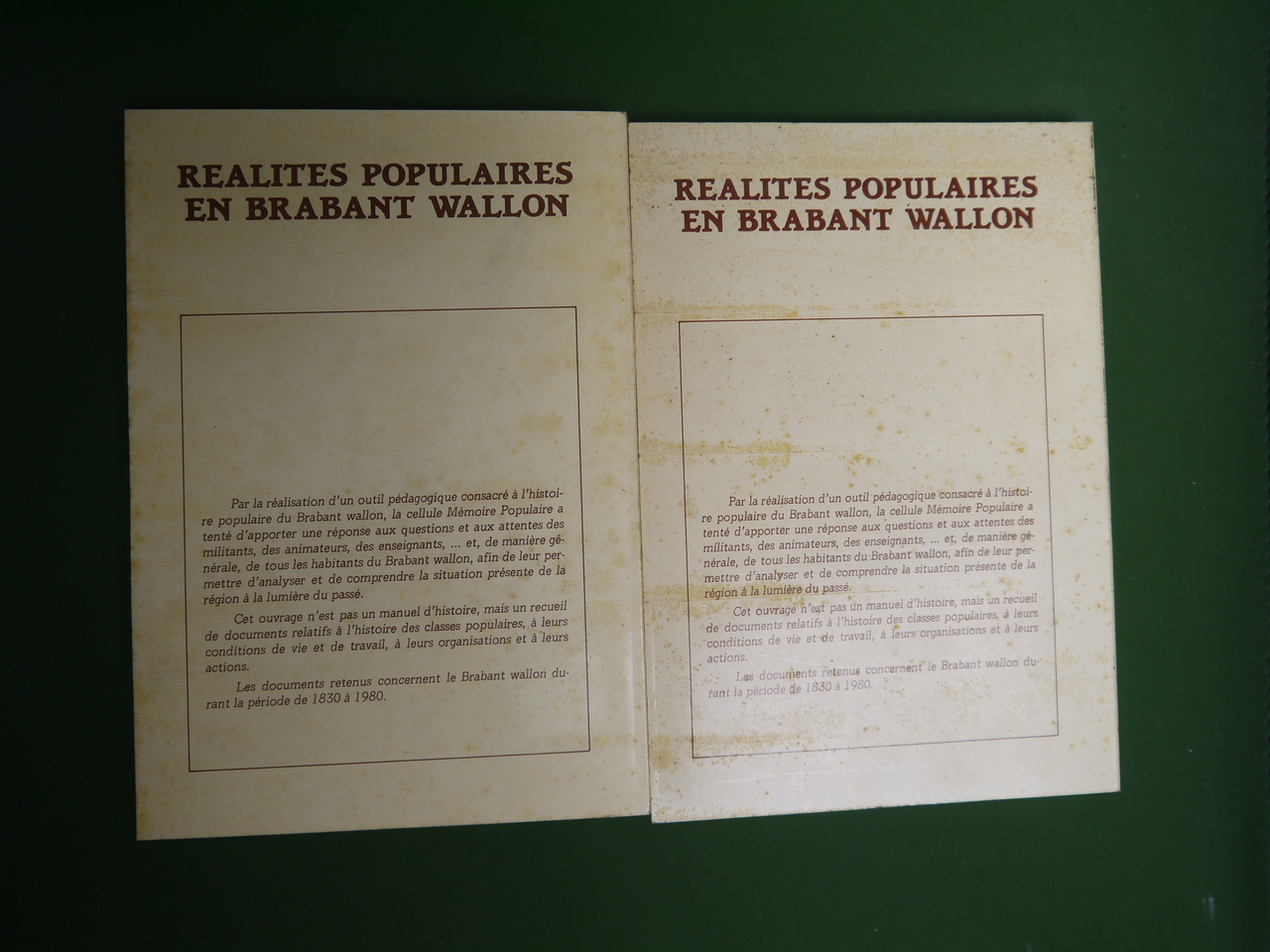 « Documents relatifs à l’histoire des travailleurs de 1830 à 1980 ». Exemplaire en état moyen.