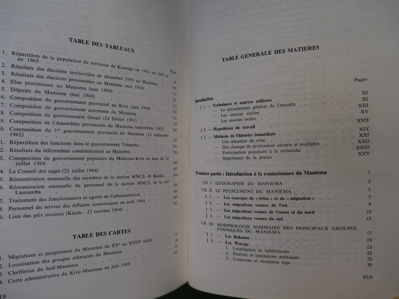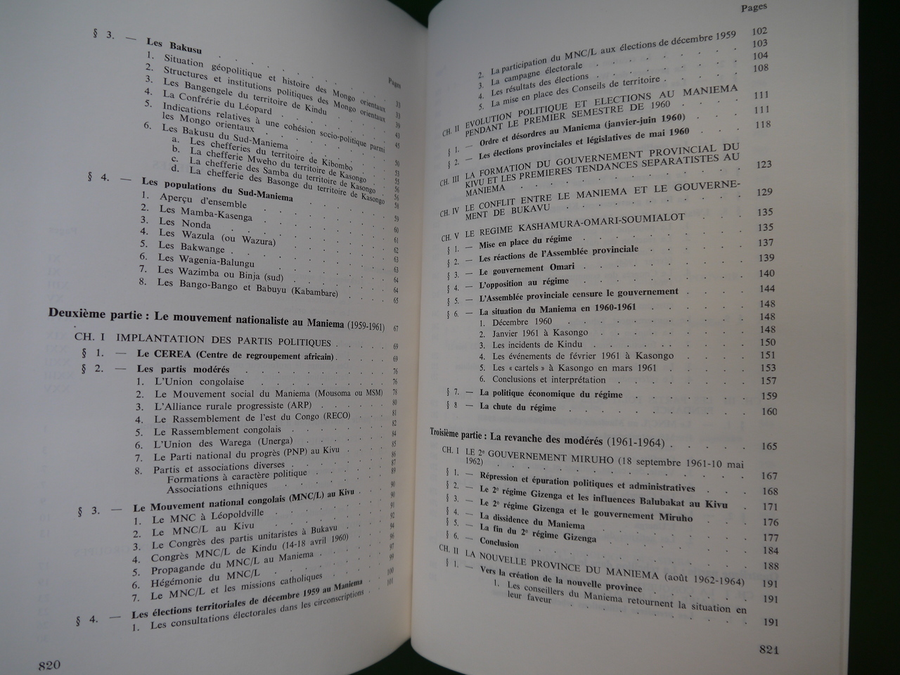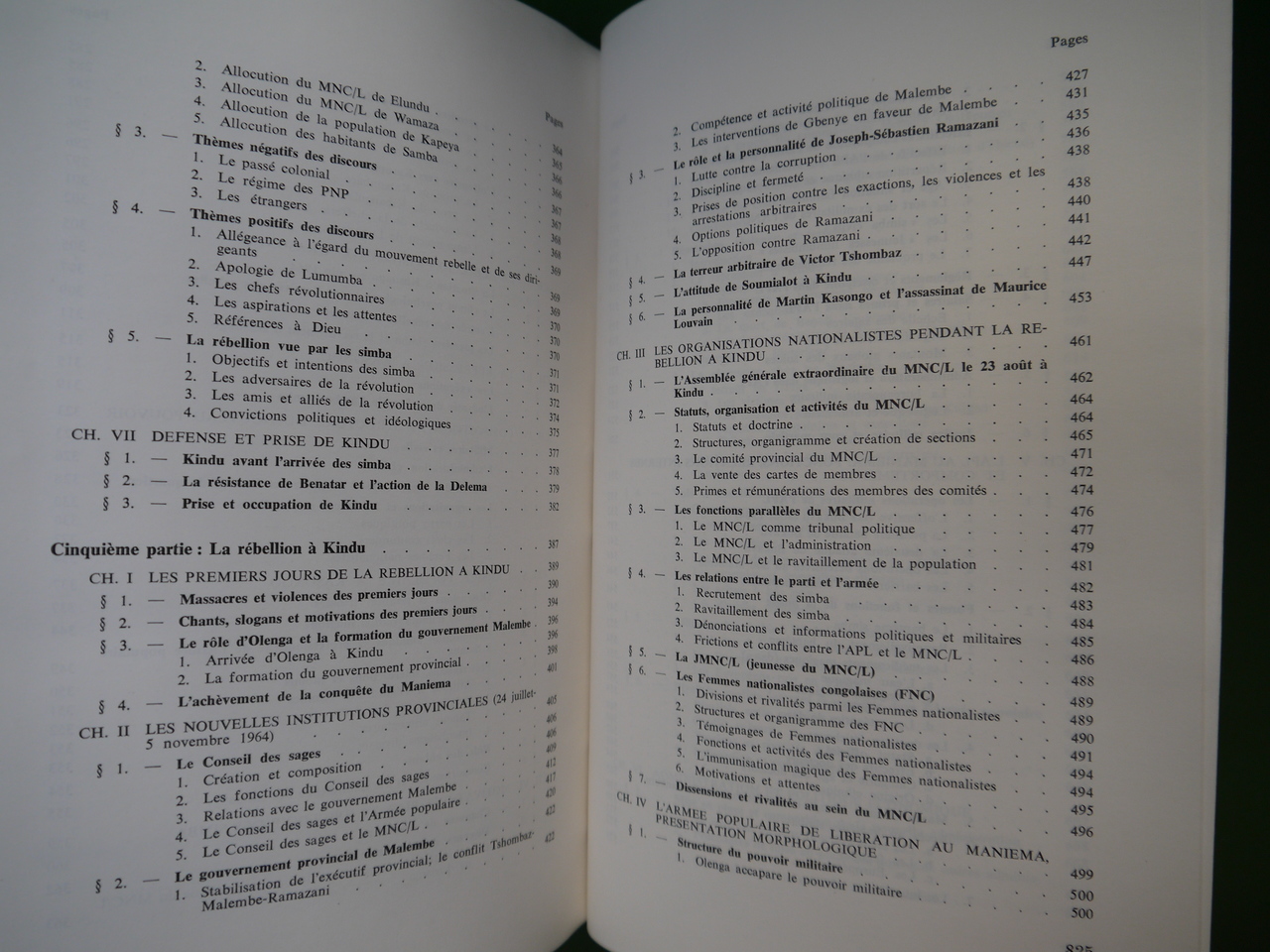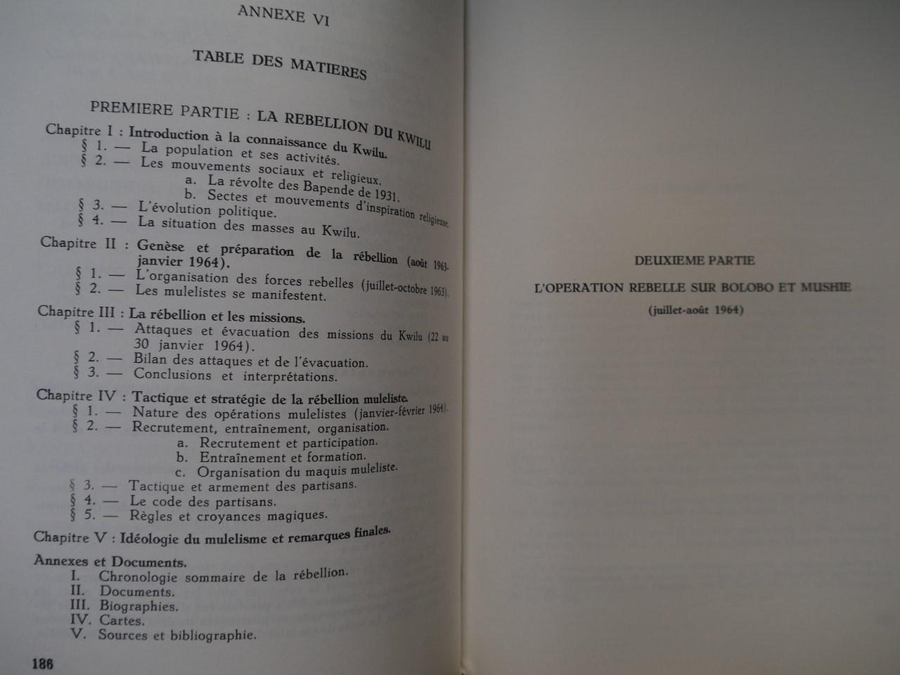 Le tome 1 est co-édité par l’INEP, l’Institut national d’études politiques, à Léopoldville. Le tome 1 aborde « l’opération rebelle sur Bolobo et Mushie », « la rébellion d’Uvira-Fizi » et « la rébellion au Nord-Katanga ». Le tome 2 est sous-titré « Maniema ». L’ensemble totalise près de 1400 pages! Biographie de l’auteur ici.