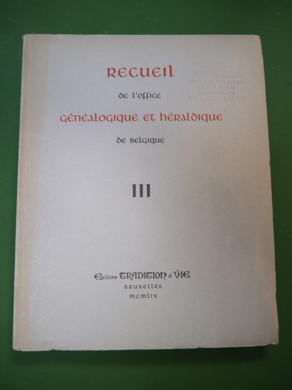 Recueil de l’office généalogique et héraldique de Belgique (tome III), divers, Tradition et vie, 1954