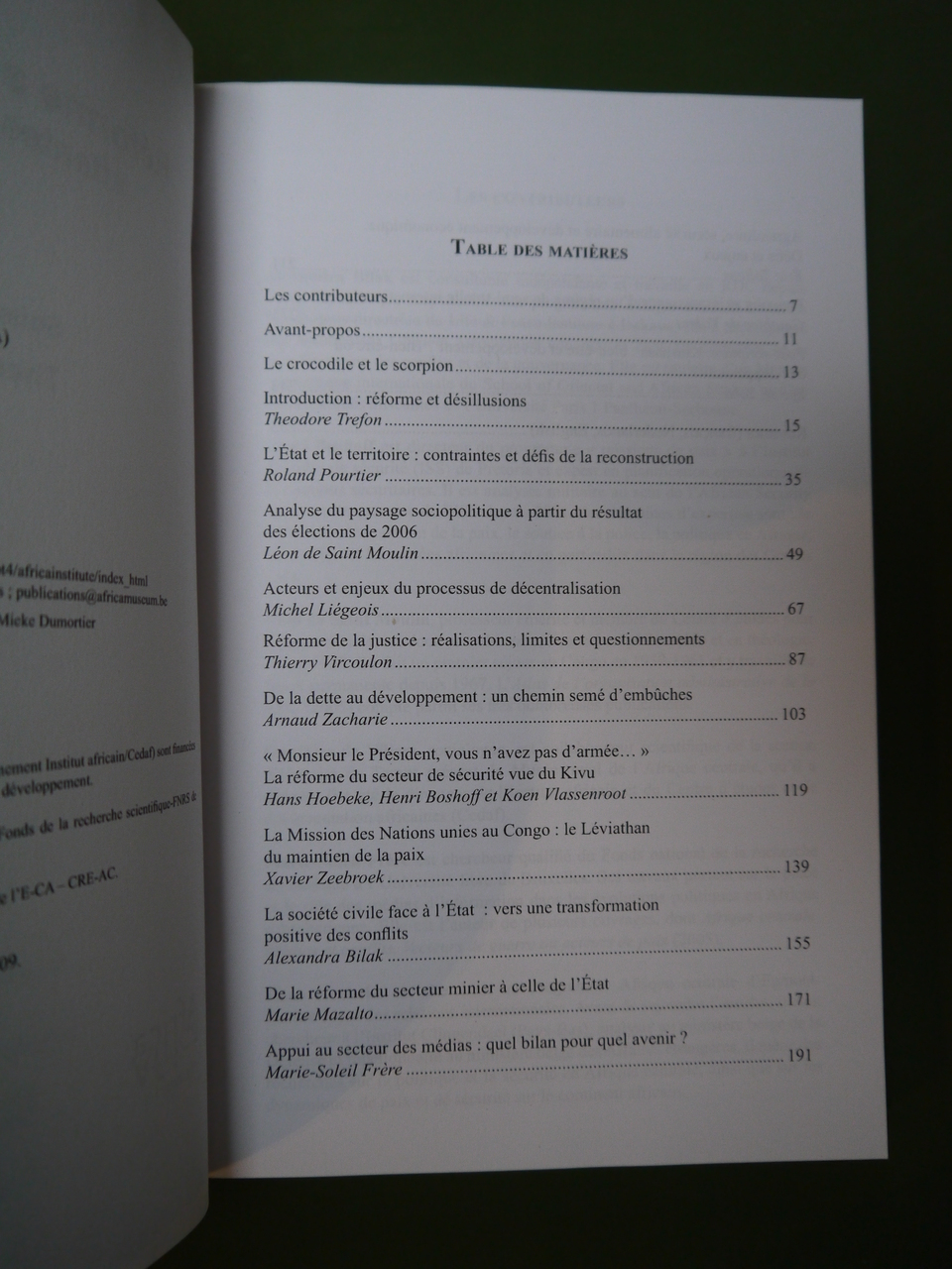 Réforme au Congo (RDC) attentes et désillusions (direction) Theodore Trefon, l’Harmattan, 2009