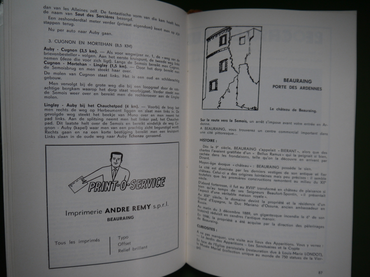 350 pages (mais l’édition est bilingue) sur la Semois… Avec de délicieuses publicités d’époque (début des années 70 vraisemblablement).