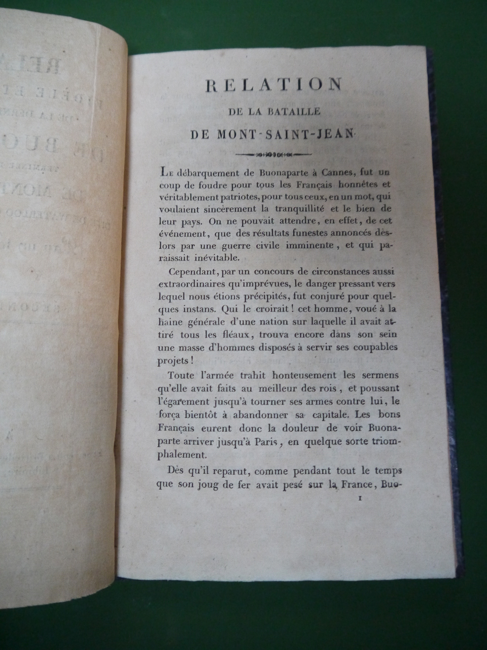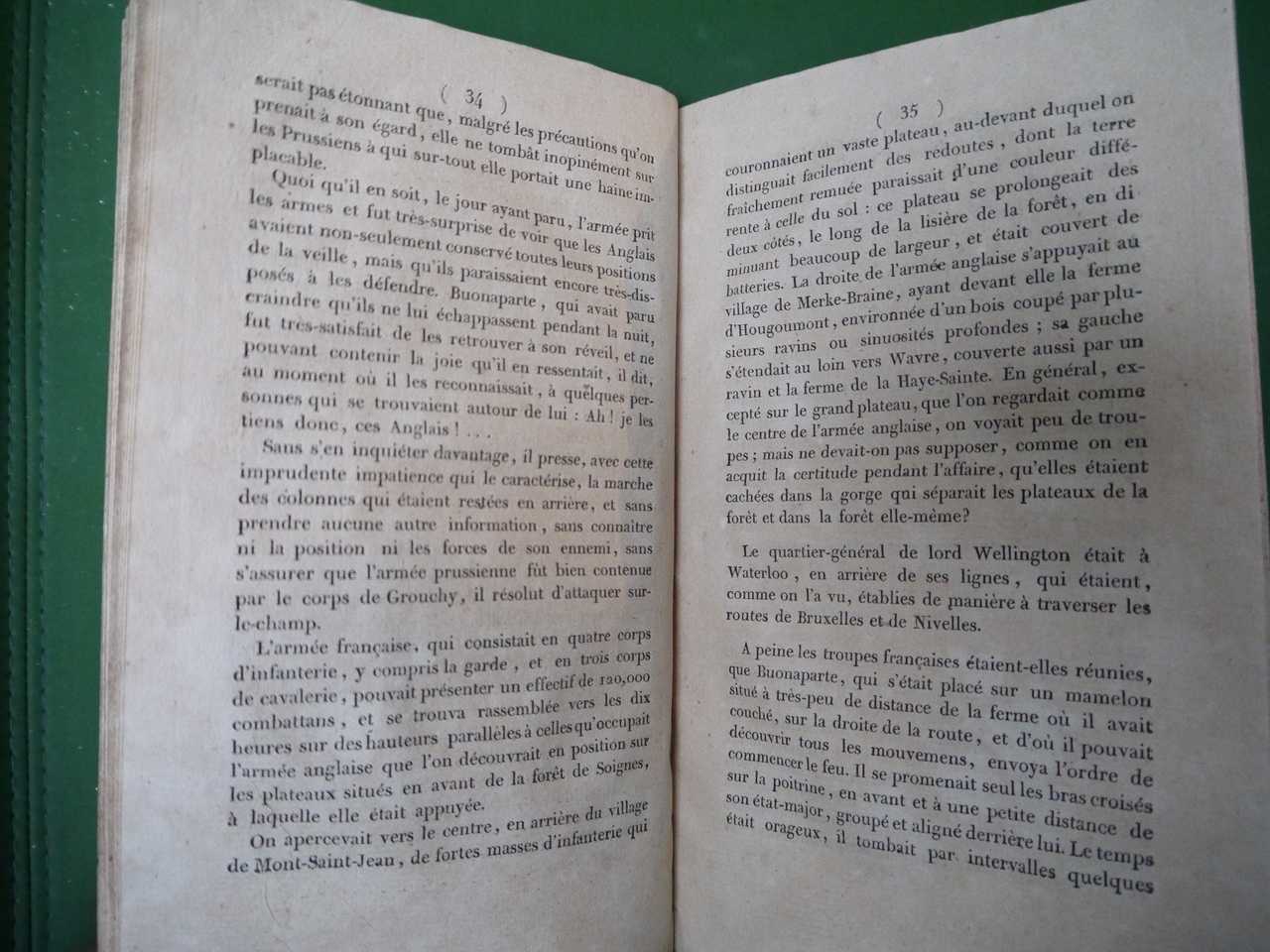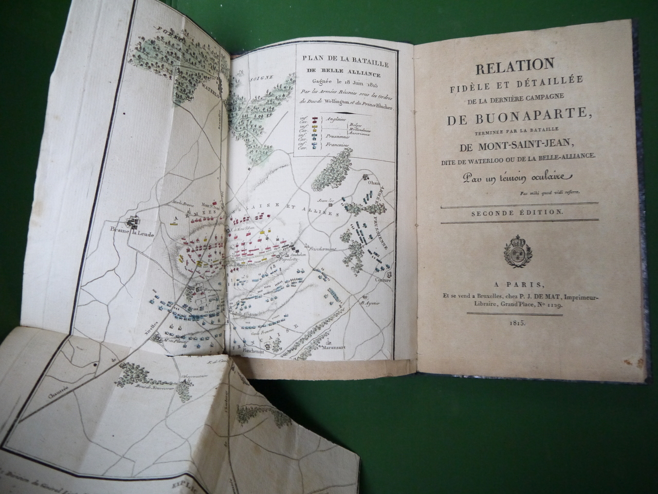 Titre complet: « (…) terminée par la bataille de Mont-Saint-Jean, dite de Waterloo ou de la Belle-alliance, par un témoin oculaire, seconde édition ». Avec une carte du champ de bataille. L’auteur se nommerait François-Thomas Delbare. Il ne portait pas Bonaparte dans son coeur.