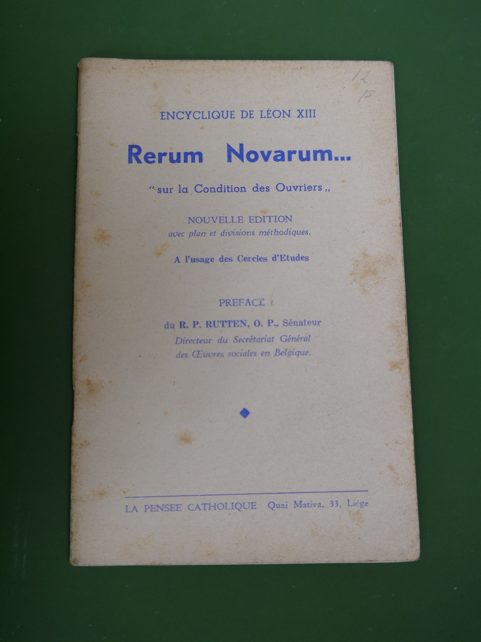 Une nouvelle édition de l’encyclique « sur la condition des ouvriers » préfacée par le R.P. et sénateur Rutten.