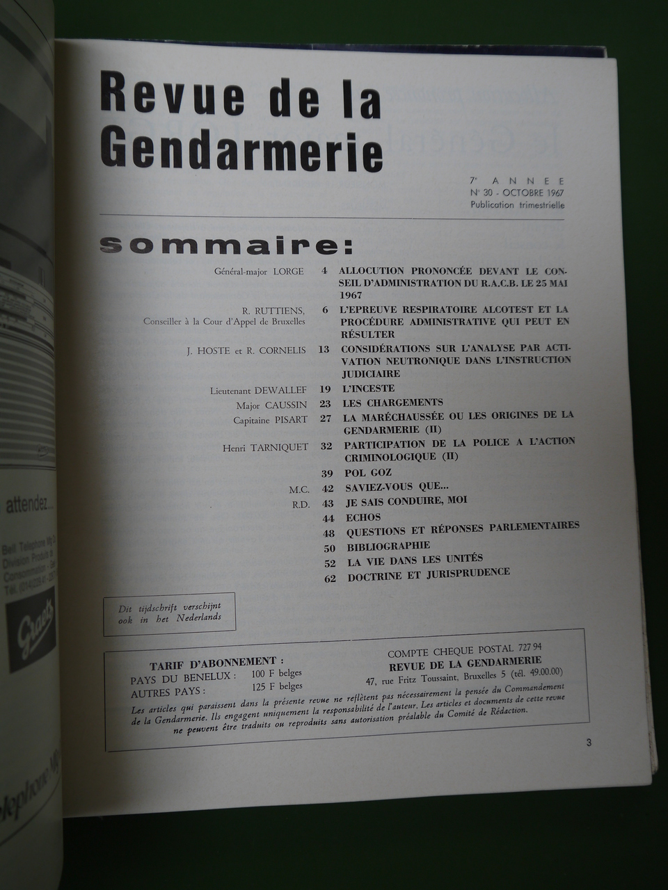 Revue trimestrielle d’octobre 1967.