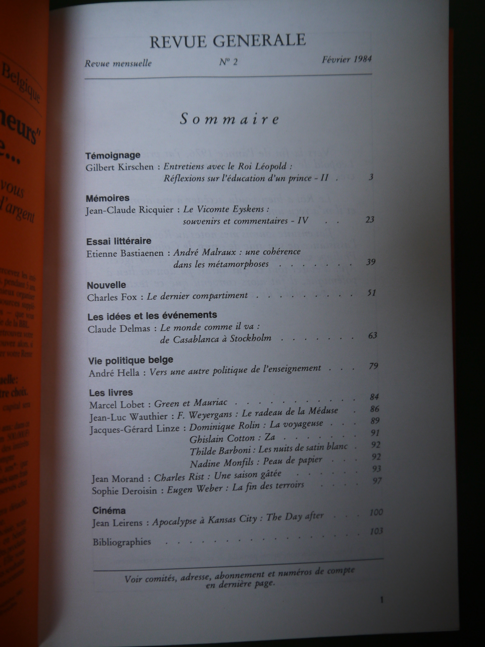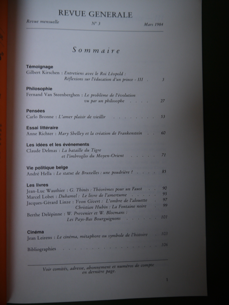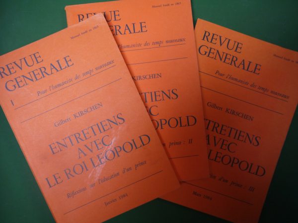 Trois numéros consécutifs de la revue générale présentant notamment les entretiens de Gilbert Kirschen avec Léopold II sur son éducation de prince. Ces entretiens seront publiés la même année chez Didier Hatier.