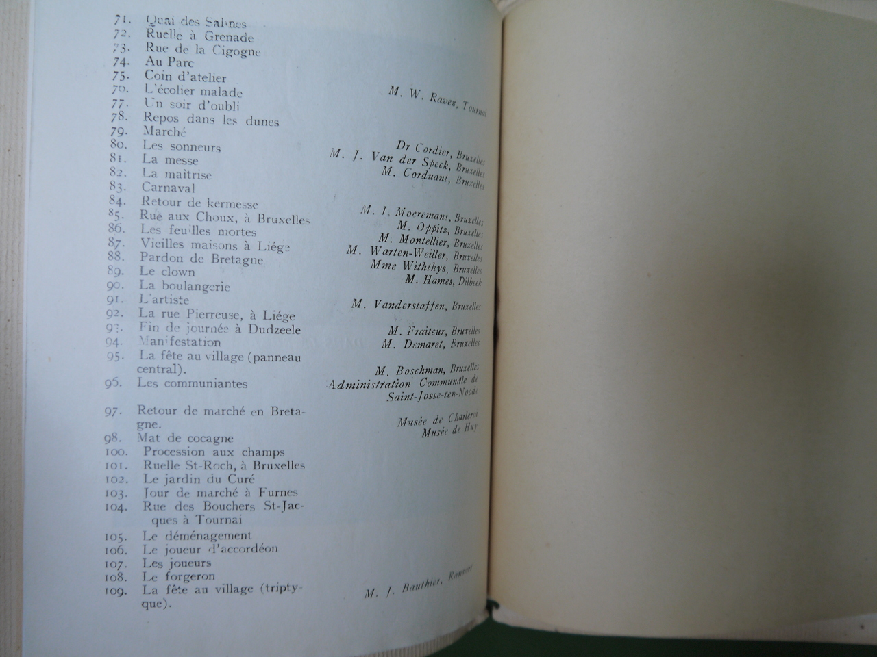Catalogue de l’exposition montée du 14 au 28 juillet 1946 en l’hommage du peintre tournaisien, deux ans après sa mort. 240 oeuvres sont mentionnées.