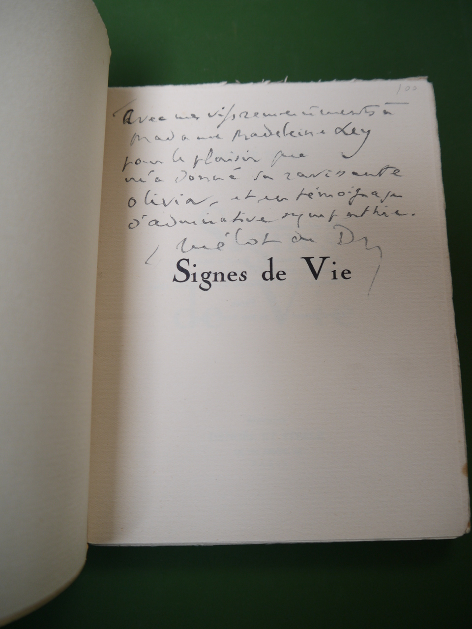 Exemplaire envoyé à Madeleine Ley, avec ls remerciements de MDD « pour le plaisir que m’a donné sa délicieuse Olivia ».