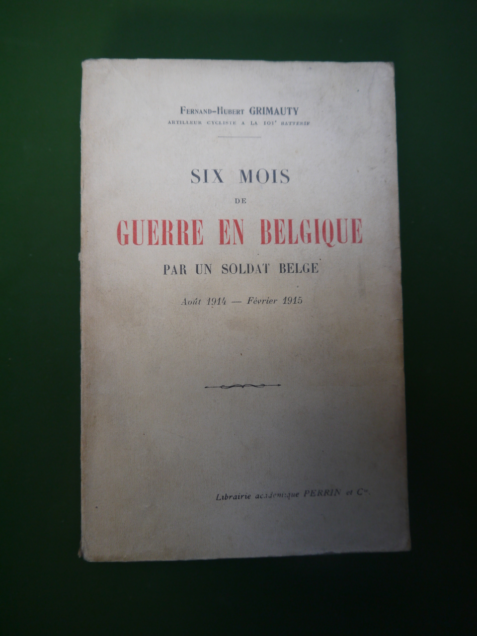 « Août 1914-Février 1915 ». L’auteur était artilleur à la 101e batterie et a pris part à de nombreuses batailles.