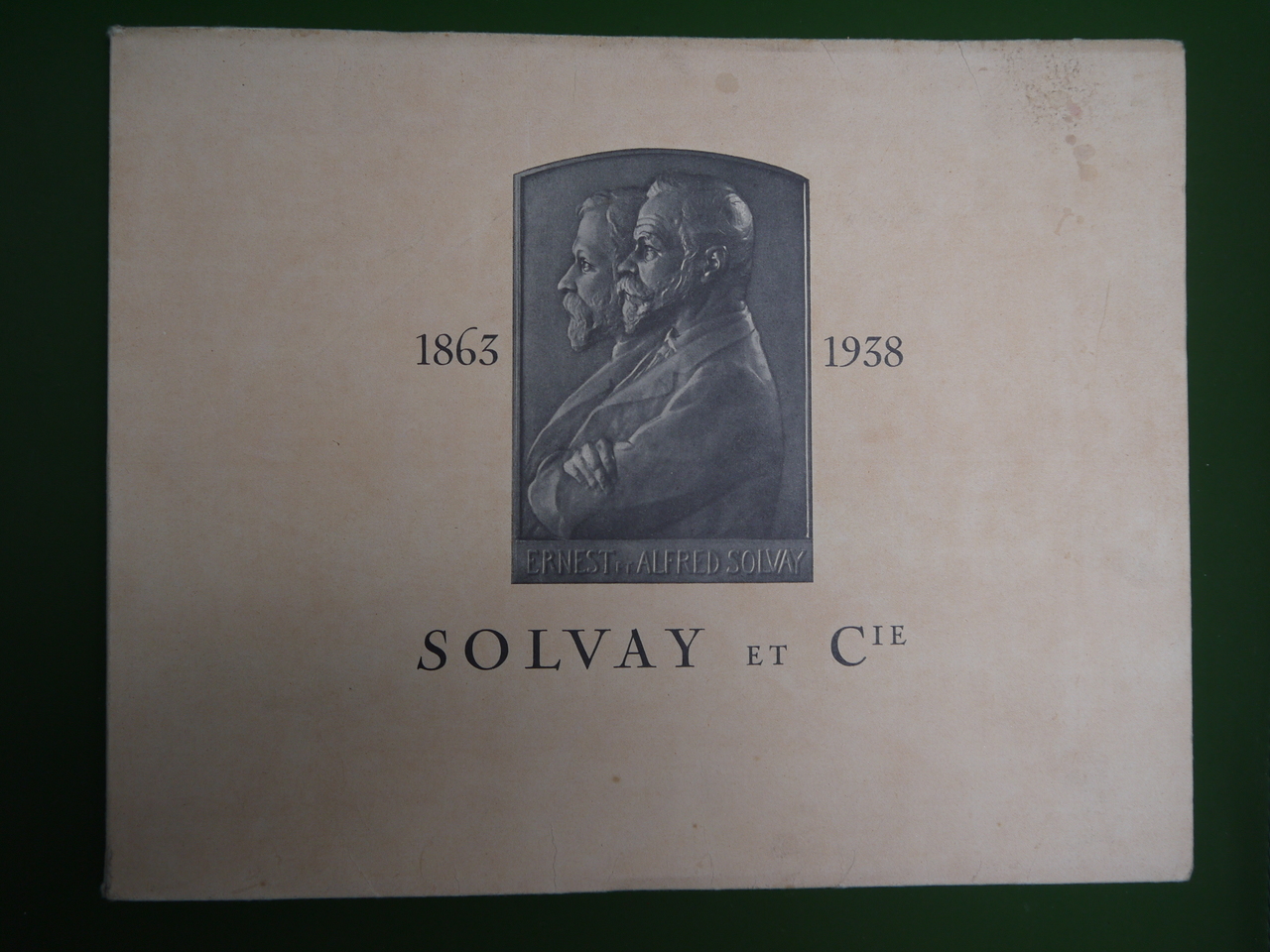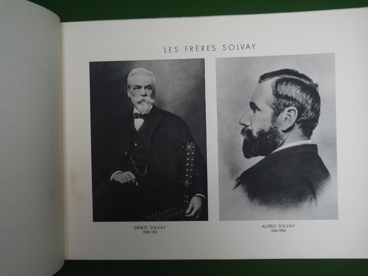 Luxueuse brochure célébrant les 75 ans de Solvay, avec de très nombreuses photos des personnels de la société et même de ceux de la maison d’Ernest Solvay!