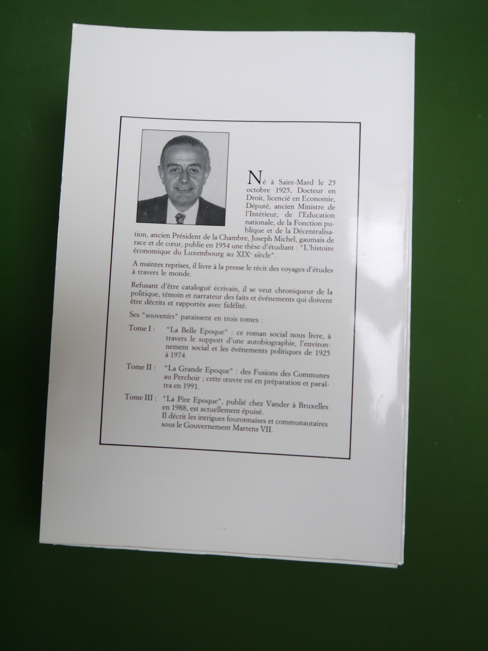Le politicien et ministre gaumais se souvient de sa longue carrière, pendant laquelle il eut notamment à gérer la fusion des communes et la crise des Fourons… Le premier tome (« La belle époque ») a été édité chez Michel Frères, les deux suivants (« La grande époque » et « La pire époque ») chez Vander.