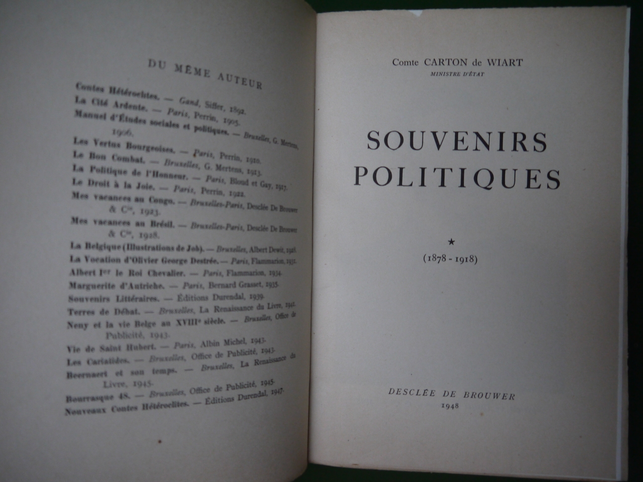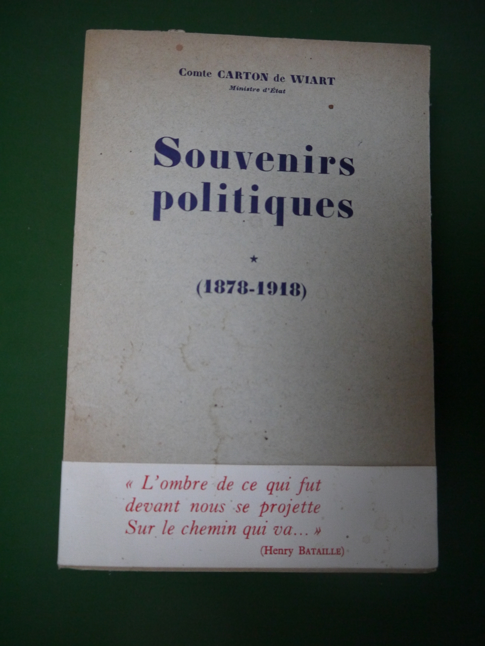 Souvenirs politiques (1878-1918), Comte Carton de Wiart, Desclée de Brouwer, 1948