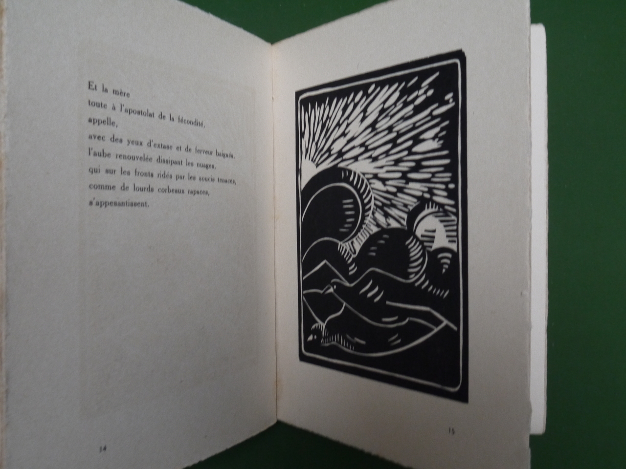 Le premier recueil poétique de Hubermont, publié à Paris en 1923 semble-t-il, à 500 exemplaires. Bois de P.L. Menon. Avec envoi de l’auteur. Dos fortement décollé.
