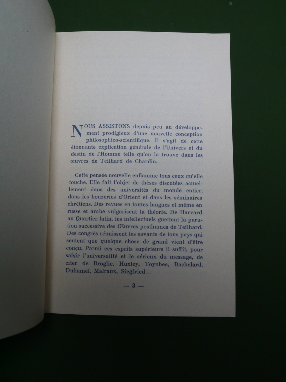 « Explication générale de l’univers et destin de l’homme » – plaquette de 21 pages.