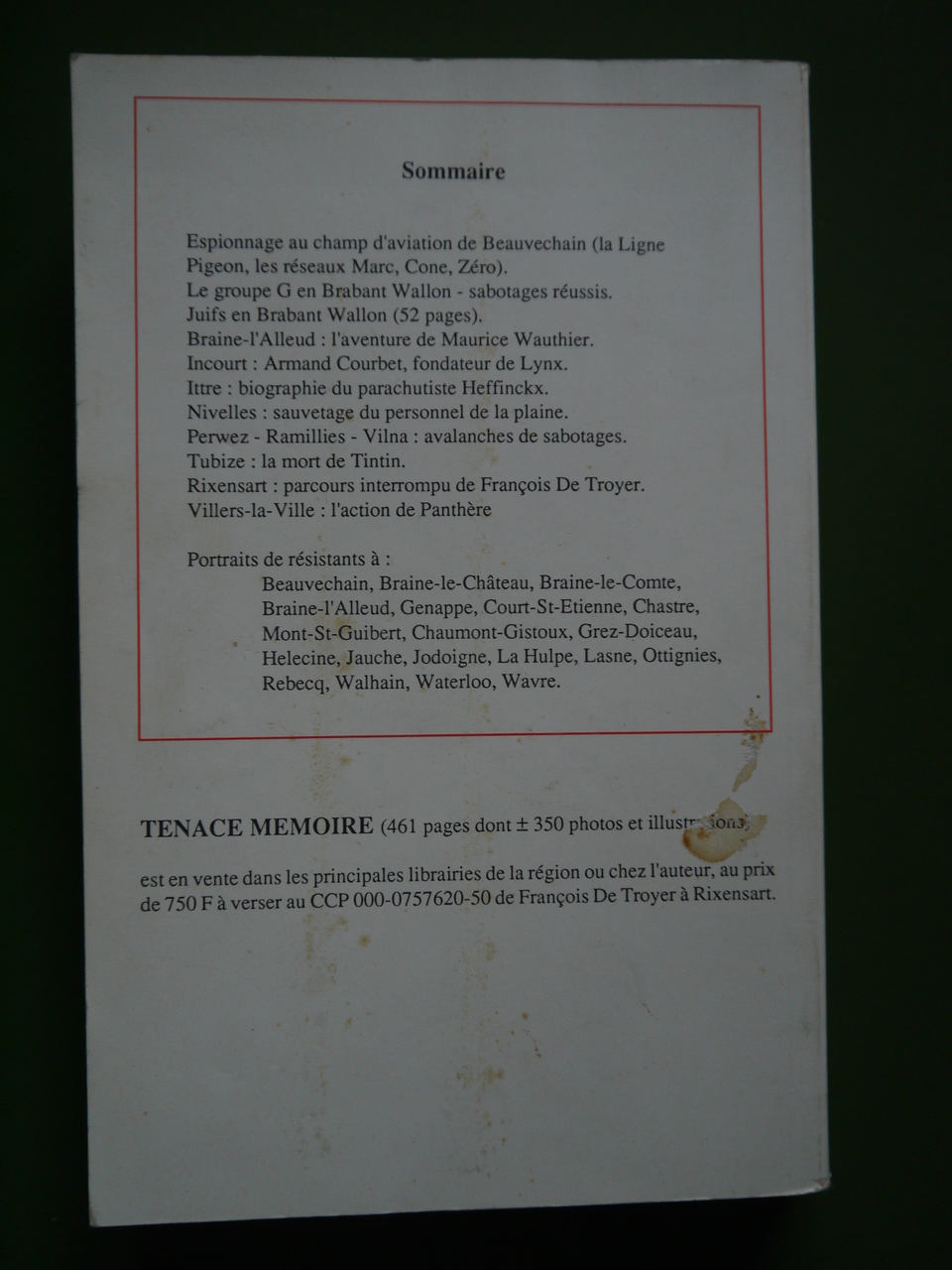 « Résistance et espionnage en Brabant wallon – suite de l' »Impossible oubli », comme le précise le sous-titre.