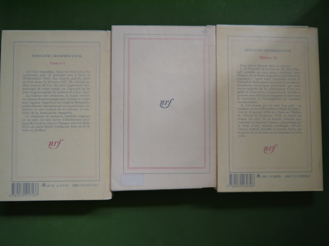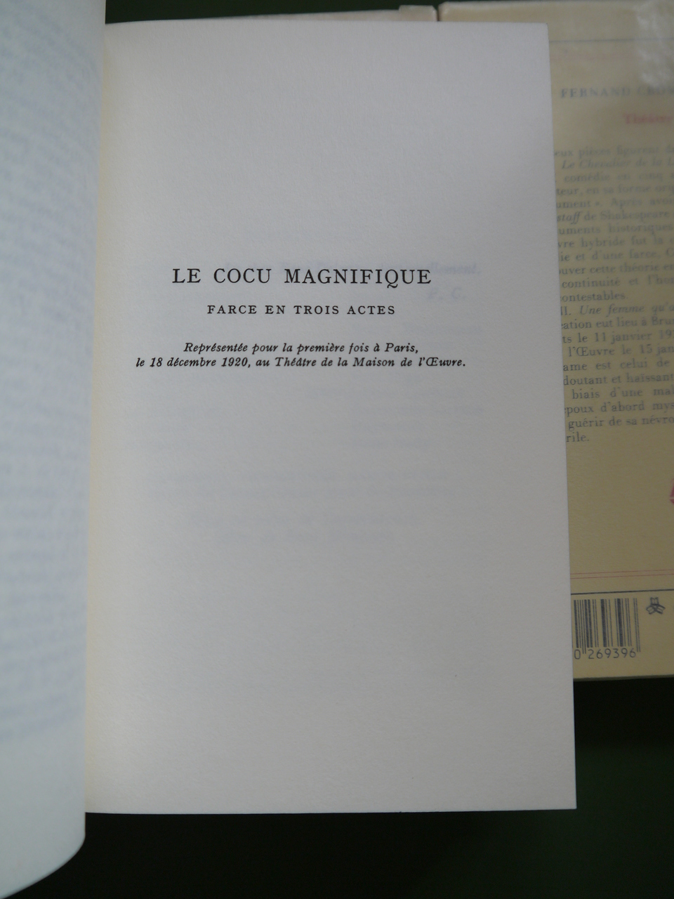 Les trois tomes, l’un imprimé en 1968, les deux autres en 1986 (dans un format très légérement plus grand). « Le cocu magnifique » reste la pièce la plus jouée de Crommelynck.