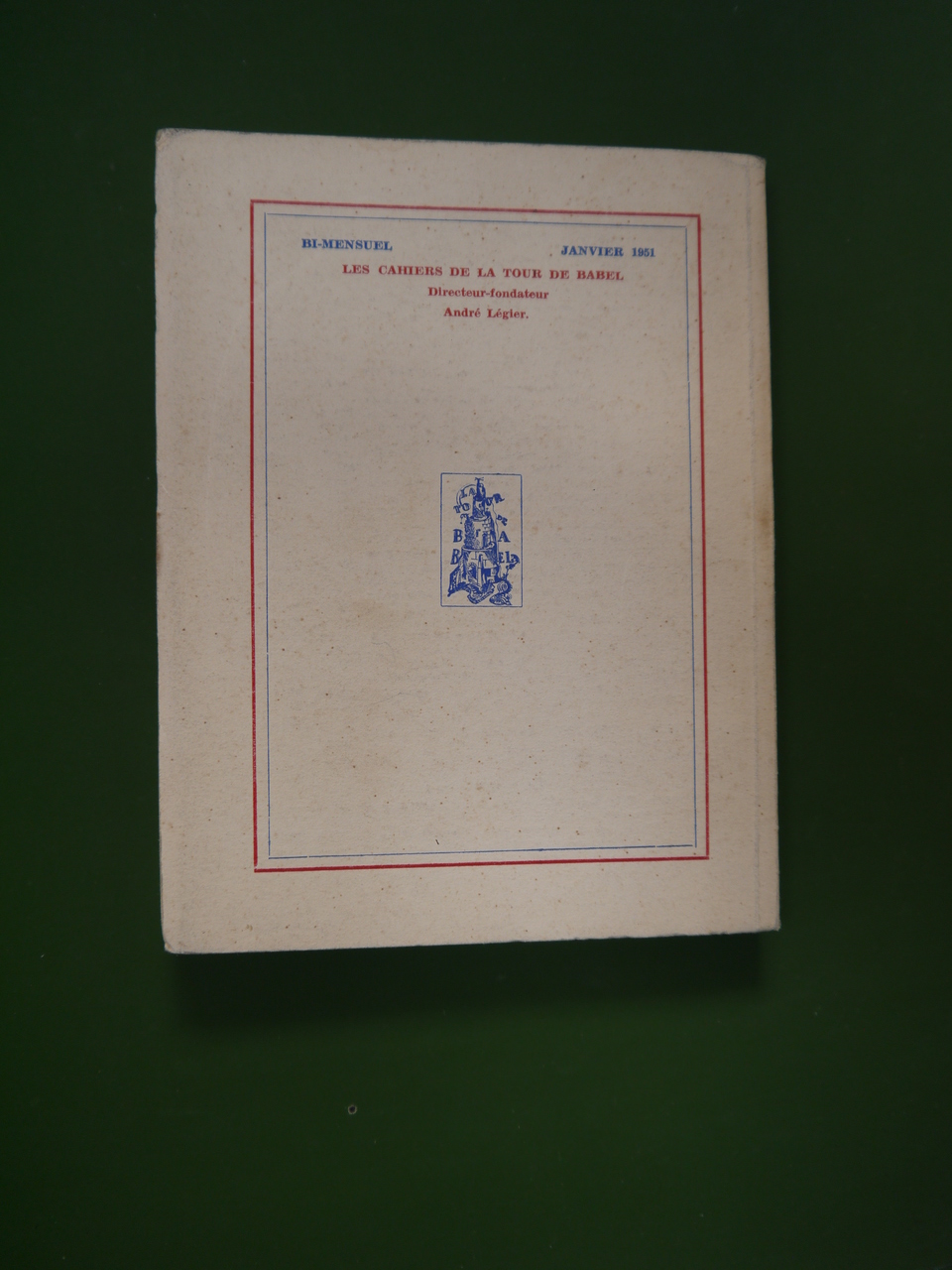 « Cahiers de la tour de Babel n° 28 ». Textes illustrés par Ange Rawoe, précédés d’une adresse de Jean Francis: « Le singulier trépas de messire Ulenspiegel », « Le perroquet de Charles-Quint » et « La folie de Hudo van der Goes ».